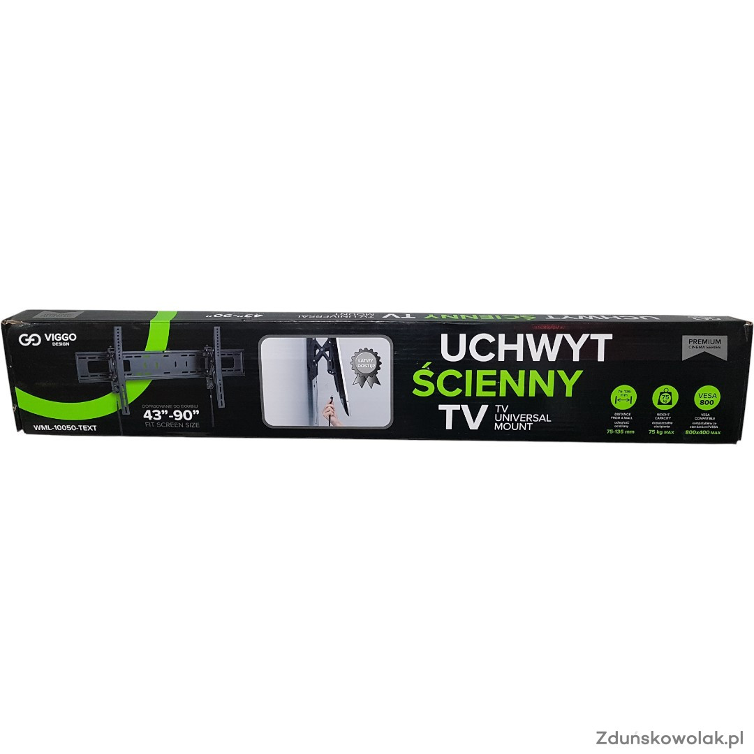 Uchwyt ścienny VIGGO WML-10050-TEXT to solidne i uniwersalne rozwiązanie do montażu telewizorów o dużych przekątnych. Zapewnia stabilne i bezpieczne mocowanie, a jednocześnie pozwala na regulację kąta nachylenia ekranu, co zwiększa komfort oglądania i redukuje odbicia światła.