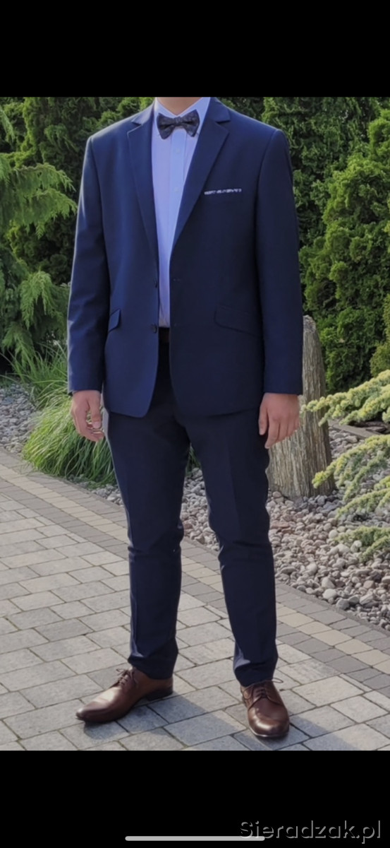 Sprzedam garnitur w kolorze granatowym. Raz założony. Więcej informacji pod numerem telefonu.