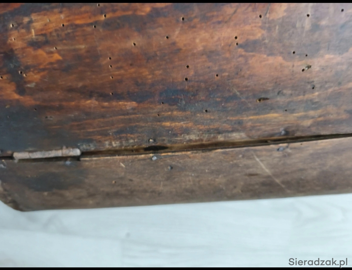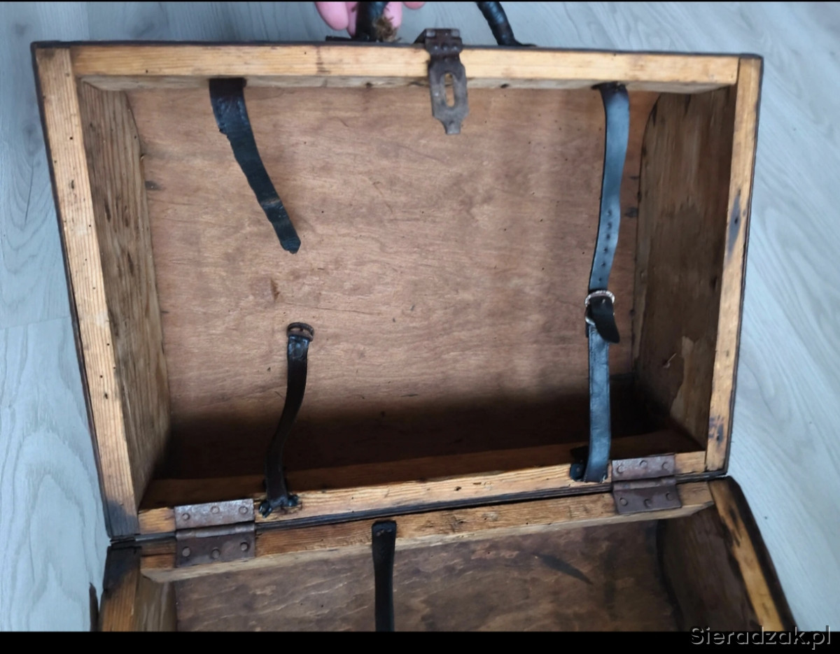 Sprzedam Stary przedwojenny kufer. Wykonany z drewna. Stan mimo tylu lat oceniam na dobry ale wymaga konserwacji i zabezpiczernia przed szkodnikami. Wszystko działa bez problemu. Zamyka się tak jak należy. Zamykanie przy rączce też zamyka się bez problemu. Kufer stał w suchym miejscu dlatego jest zachowany w takim stanie. Wszystkie niedoskonałości starałem się przedstawić na zdjęciu. W razie jakichkolwiek pytań czy dodatkowych zdjęć zapraszam.