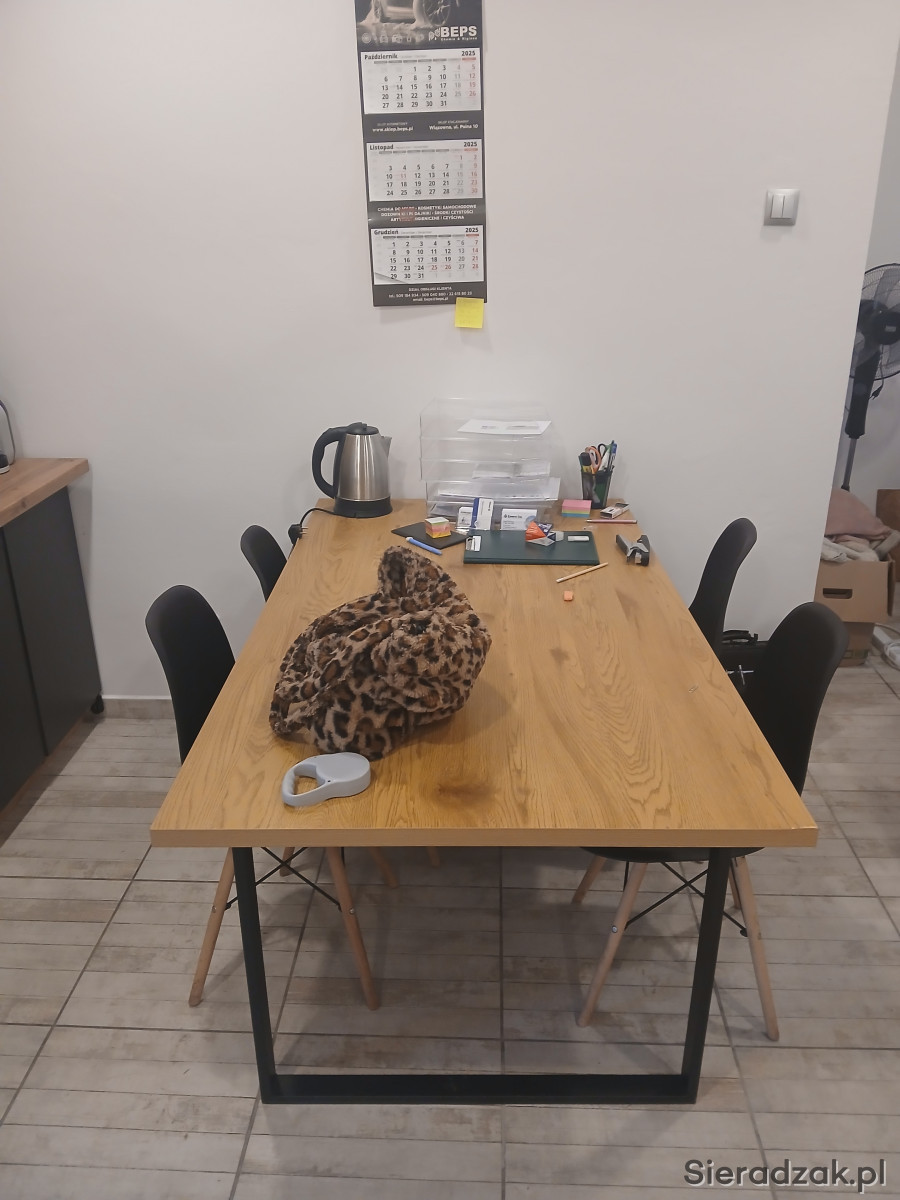 Do komplety stół o wymiarach 2,2 x1,2 z czterema krzesłami.