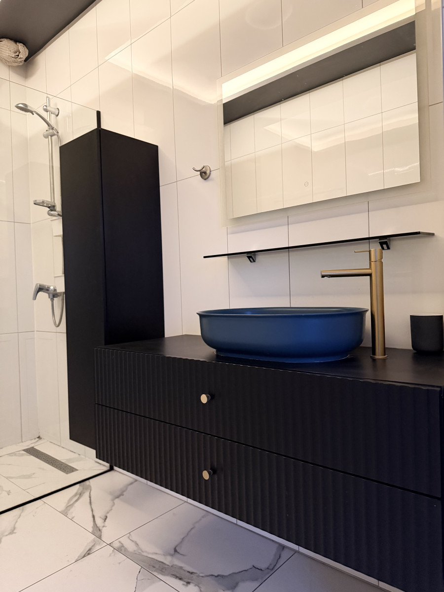 W mieszkaniu znajduje się klimatyzacja, odrębna garderoba z wejściem z większej sypialni, w kuchni zamontowana jest wylewka z wodą pitną z filtrem odwróconej osmozy.