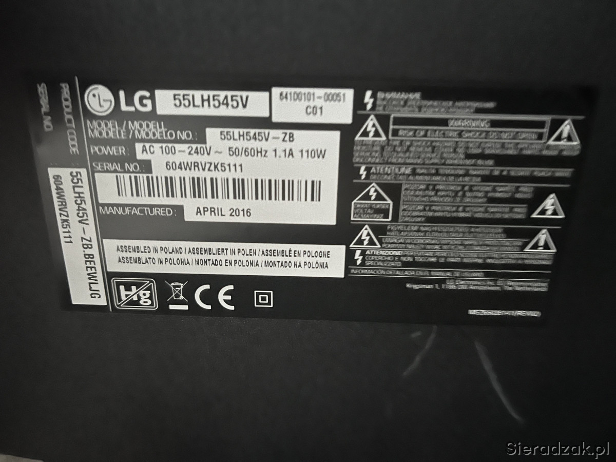 Sprzedam telewizor LG 55 cali 55LH545V
