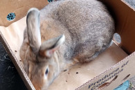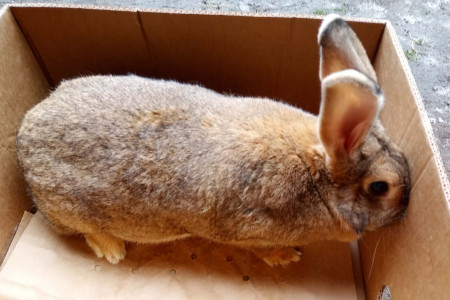 Sprzedam samicę królika domowego (mieszańca) typu mięsnego o umaszczeniu w kolorze odcieni brązu, szarości i beżu tworzącym naturalny cieniowany wzór.
