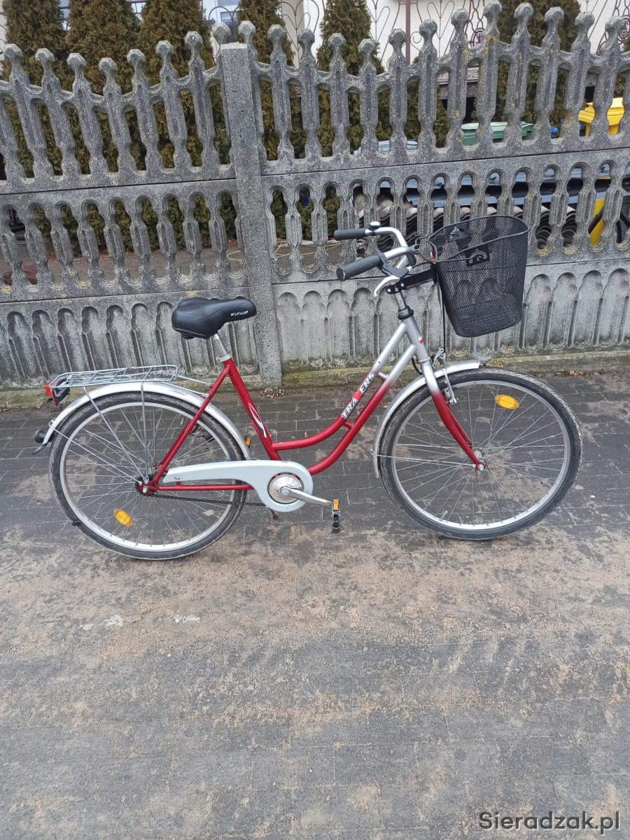 Sprzedam Rower damski Polski Made in Poland bez przerzutek travels w bardzo dobrym stanie technicznym i wizualnym koła 26 cali hamulce ma w pedałach i w rączce i ma koszyk z przodu wszystko jest sprawne Rower damski 26 cali bardzo leciutko jeździ