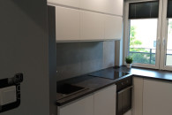 W kuchni znajdują się: lodówko-zamrażarka płyta indukcyjna, piekarnik, kuchenka mikrofalowa, toster, zmywarka, czajnik, garnki, patelnie, przybory i naczynia kuchenne.
