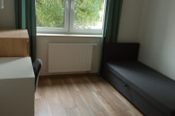 W dwuosobowym pokoju znajdują się dwa pojedyncze łóżka, dwa biurka z krzesłami, duża podwójna szafa i komoda. W pokoju jednoosobowym znajduje się jedno łóżko pojedyncze, biurko z krzesłem, duża szafa i komoda.
