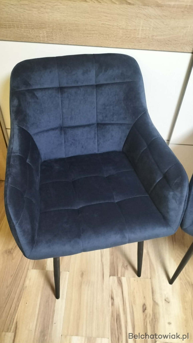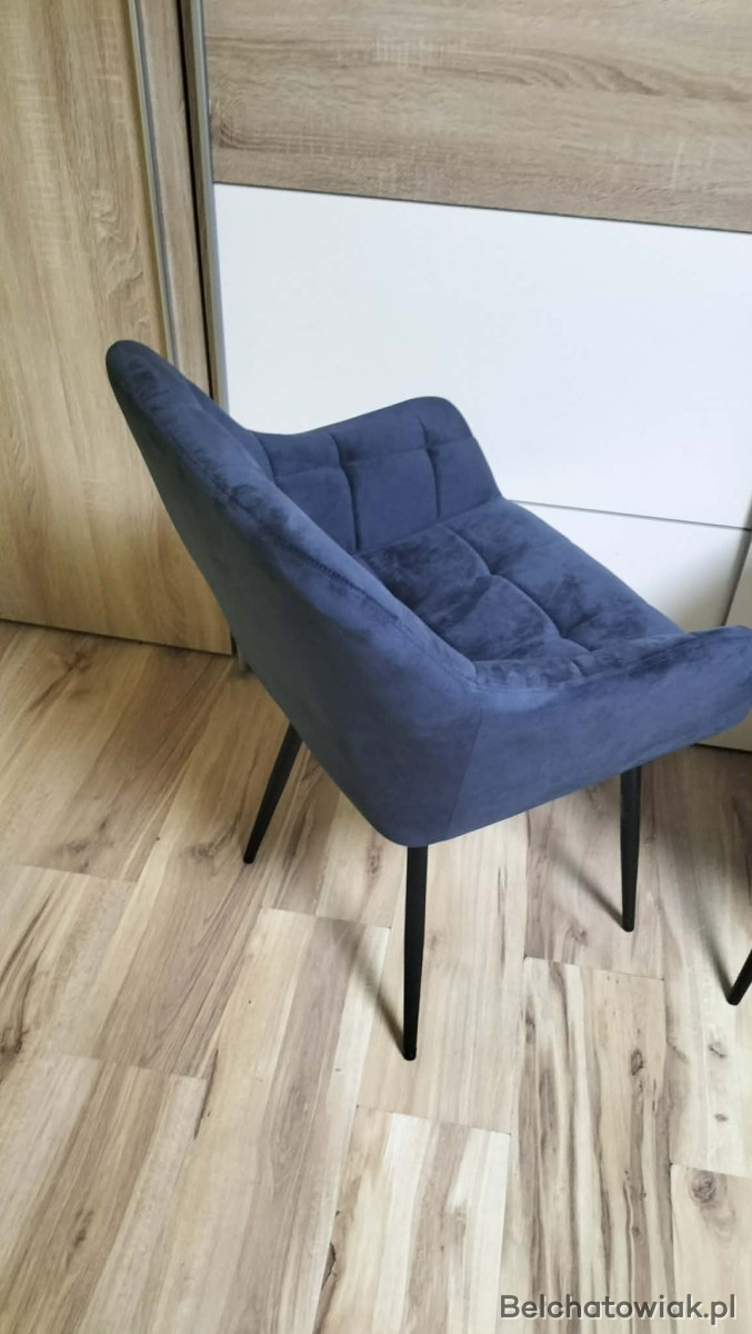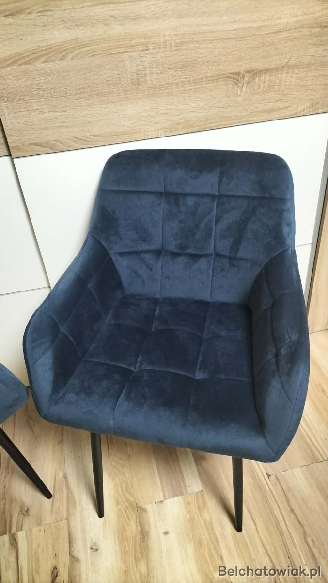 To krzesło jest podtrzymywane na metalowej ramie i metalowych nogach, dzięki czemu jest bardzo stabilne i trwałe. Wyściełane siedzisko jest pokryte wysokiej jakości aksamitem, który jest odporny na rozerwanie i zużycie. Pikowanie w kratkę z delikatnymi szwami sprawia, że krzesło kuchenne nie ulega łatwo deformacji.