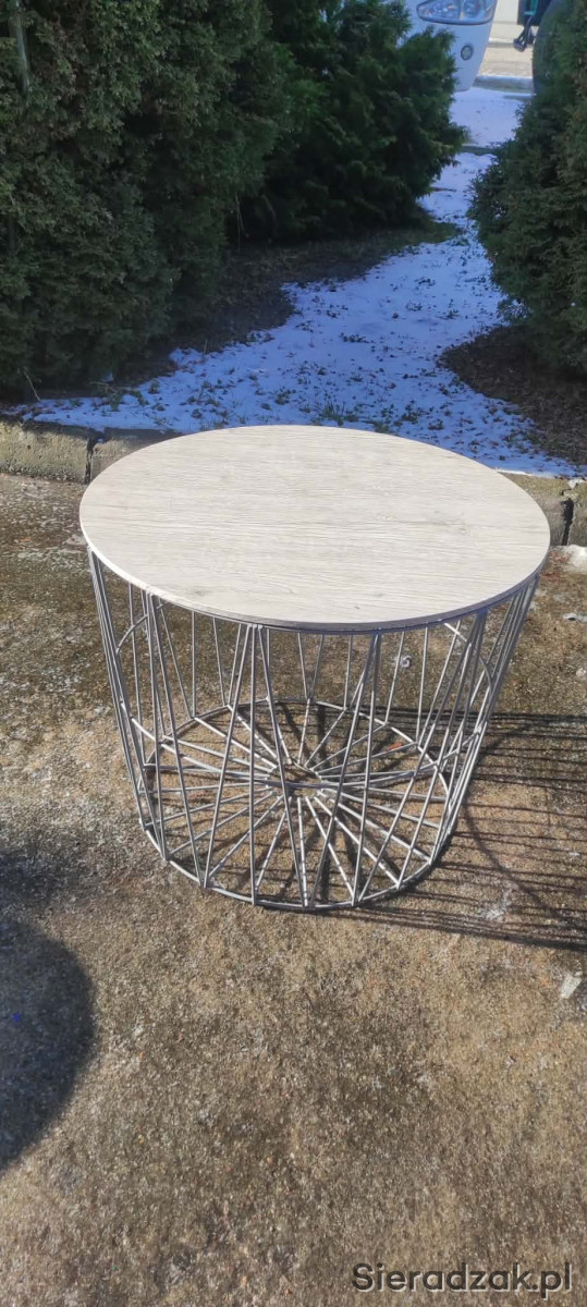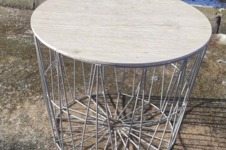 STOLIK METALOWY Z DEWNIANYM BLATEM