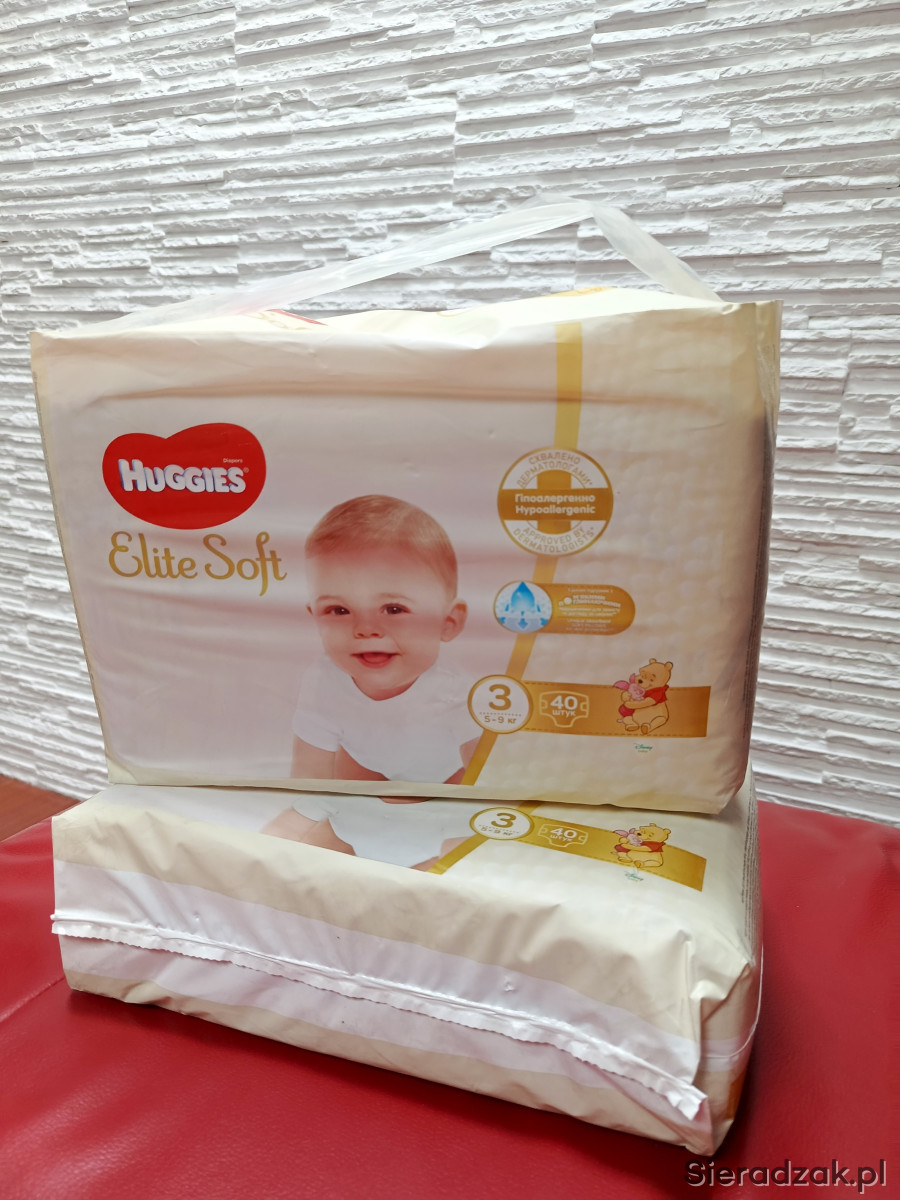Witam mam do sprzedania dwie paczki pampersów firmy HUGGIES paczki nowe nieotwierane. Rozmiar 3 masa ciała 5-9kg. Dwie paczki po 40sztuk łącznie 80sztuk.