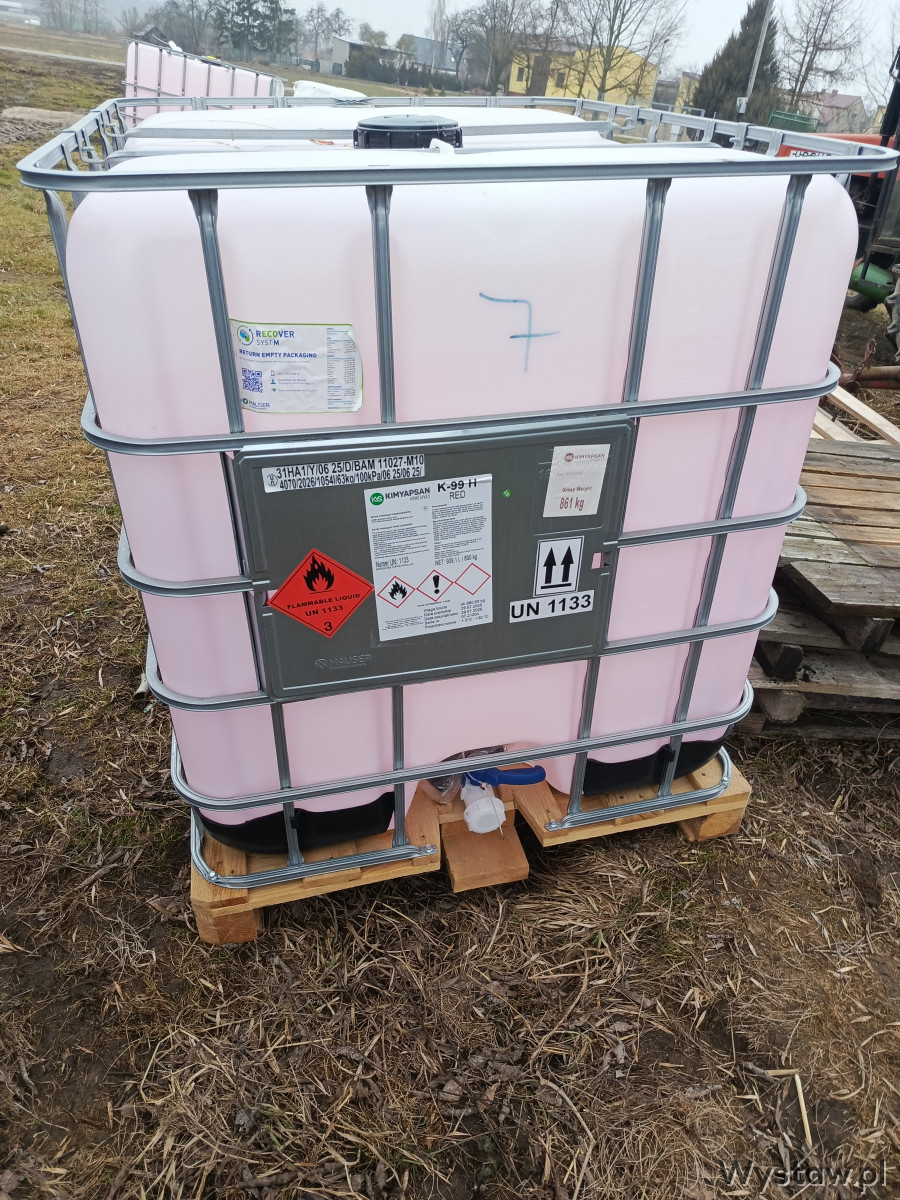 Sprzedam zbiorniki mauzery 1000 litrów jednorazowym użyciu po kleju tapicerskim idealny na deszczówkę lub po wymyciu na inne płyny dolne zawory w ogóle nie używane klej został wypopowany górnym zaworem cena 180 zł za sztukę tel.783702817 lokalizacja Raków 12 km od Wieruszowa