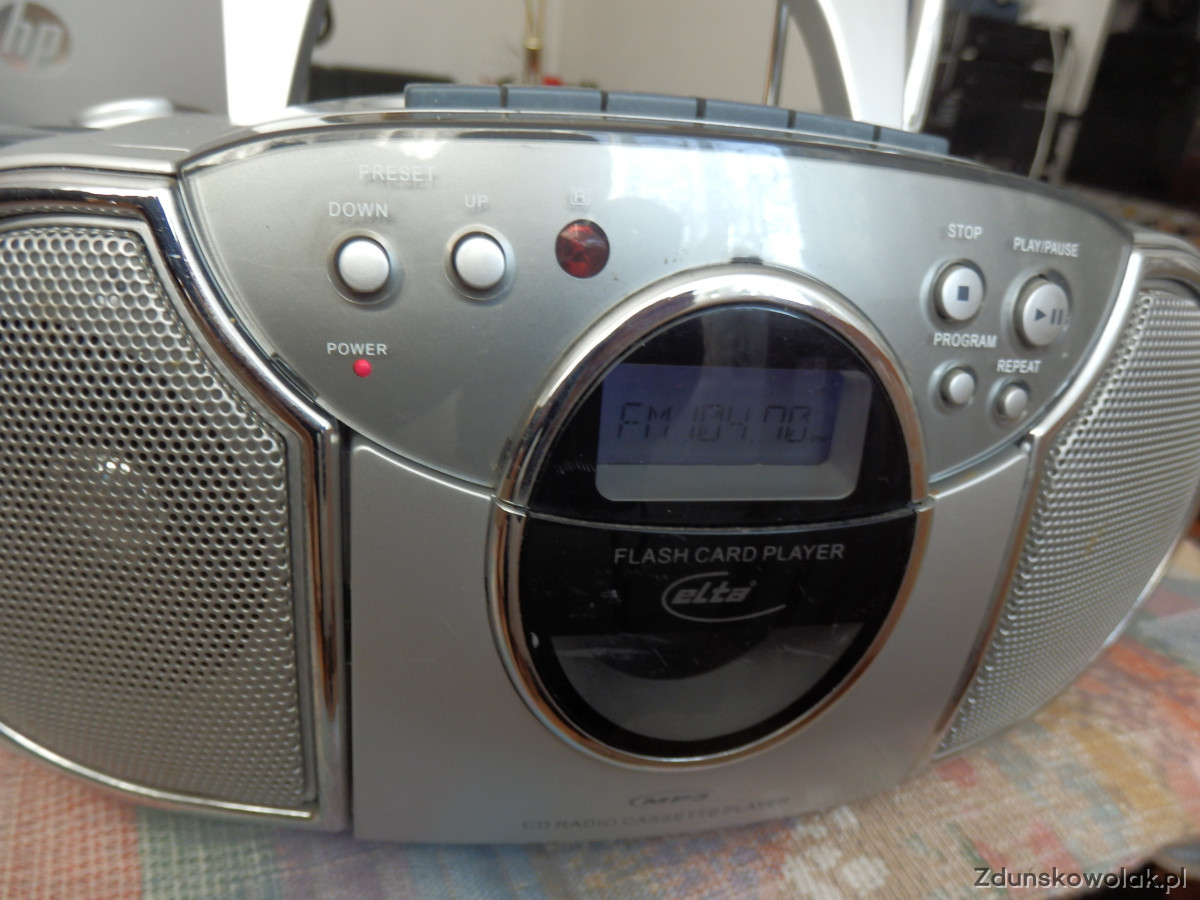 Sprzedam CD-Radio Cassette z USB i.... marki ELTA. Sprzęt sprawny z wyjątkiem magnetofonu, który wymaga wymiany paska napędowego. Sprzęt zasilany 230V i bateriami ze sprawna anteną , wyświetlaczem funkcji. Wygląd estetyczny daje możliwość użytkowania w mieszkaniu ale także w garażu lub na działce - dzwięk czysty i o dużej skali głośności. Polecam.