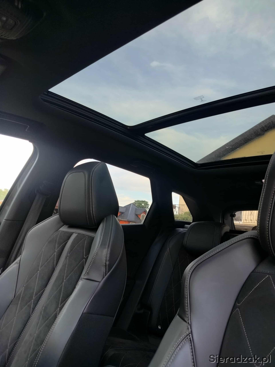 Wnętrze w stanie idealnym – czyste, bez przetarć. Samochód prezentuje się świetnie zarówno w dzień, jak i po zmroku — galeria zdjęć zawiera również fotografie wykonane nocą, aby pokazać efektowne oświetlenie ambientowe we wnętrzu oraz zewnętrzne oświetlenie LED i projektory w lusterkach (logo Peugeot).