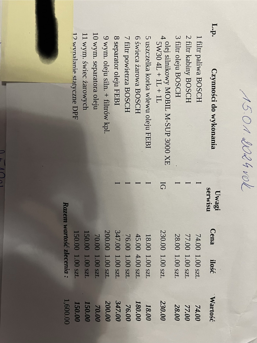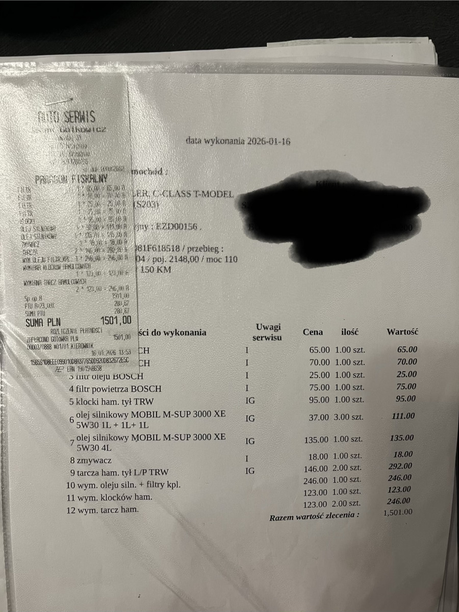 Wszystkie filtry i olej przy 268 tyś