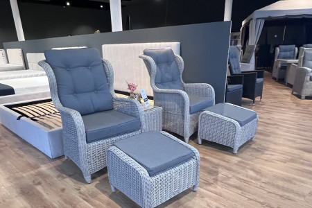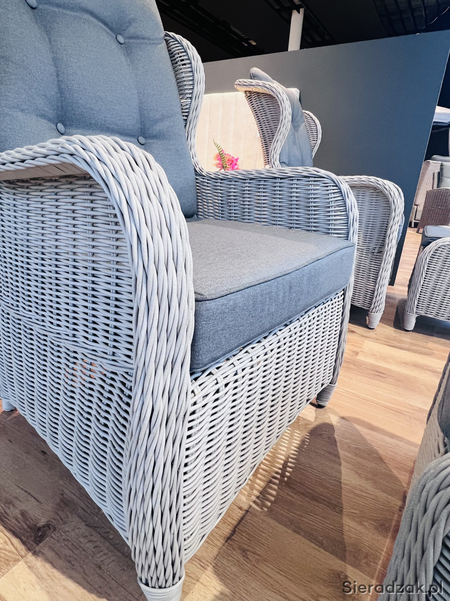 Zestaw mebli ogrodowych Comfort Grey składa się z dwóch krzeseł ogrodowych z podnóżkami oraz stolika kawowego w kolorze Grey. Zestaw wykonany jest z ręcznie plecionego okrągłego rattanu i posiada pasujące poduszki z poszewkami odpornego na UV w kolorze ciemnoszarym, zapewniające najwyższy komfort. Komfort siedzenia jest bardzo wysoki, a lato można w pełni cieszyć się na tych pięknych meblach ogrodowych.