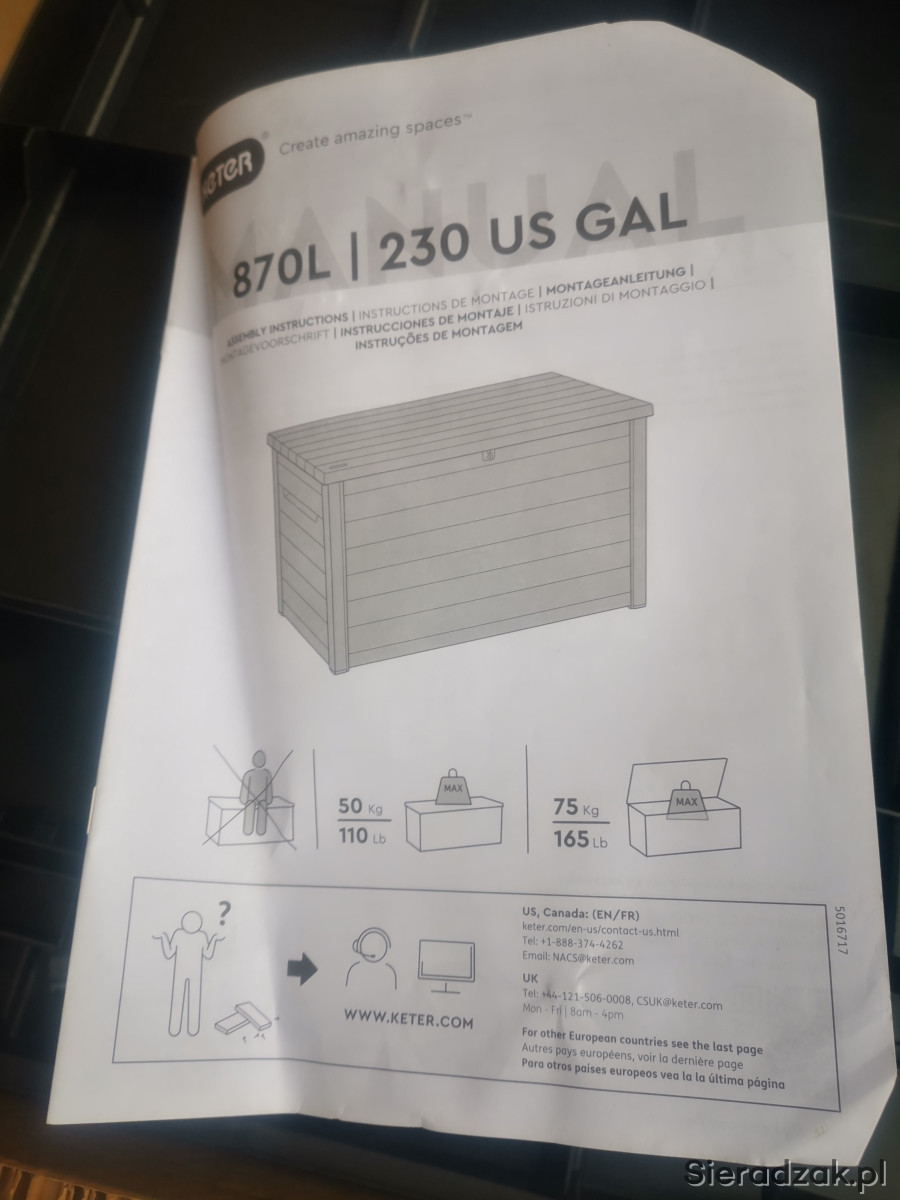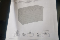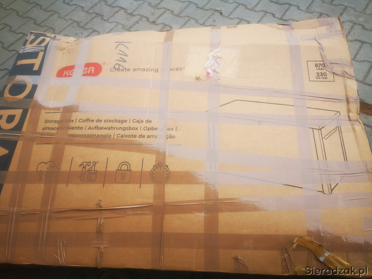 Kupiona rok w ubiegłym roku, ale nie rozłożona, gdyż zdecydowałem się jednak na większy schowek. Poniżej informacje o skrzyni.
