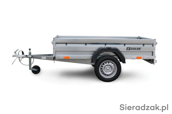 Przyczepy towarowe Zasław to nowoczesna linia przyczep samochodowych wykonanych z najlepszych dostępnych na polskim rynku materiałów. Produkty tej kategorii charakteryzuje m.in.: nowoczesny design burt walcowanych na zimno, wytrzymałe zaczepy burtowe z kompensacją oraz dyszel prowadzony od osi dla większej wytrzymałości konstrukcji. Wszystkie elementy ramy cynkowane są ogniowo, co gwarantuje ich trwałość i dużą odporność na korozję. Model 205SU posiada oś o DMC 750kg, uchylną skrzynię i otwieraną przednią burtę oraz system szybkiego demontażu burt.
