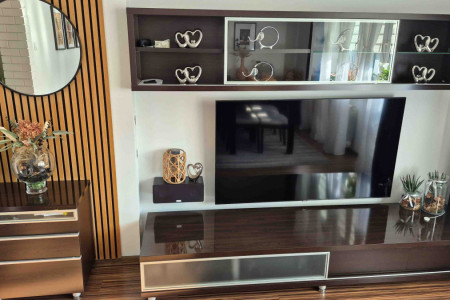 Szafka RTV (2 szuflady + szklane drzwi przesuwane) – szer.: 240 cm, wys.: 37cm, głębokość: 59 cm