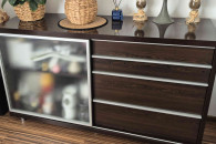 Komoda (szklane drzwi przesuwane + 4 szuflady) - szer.: 152 cm, wys.: 89 cm, głębokość: 47 cm
