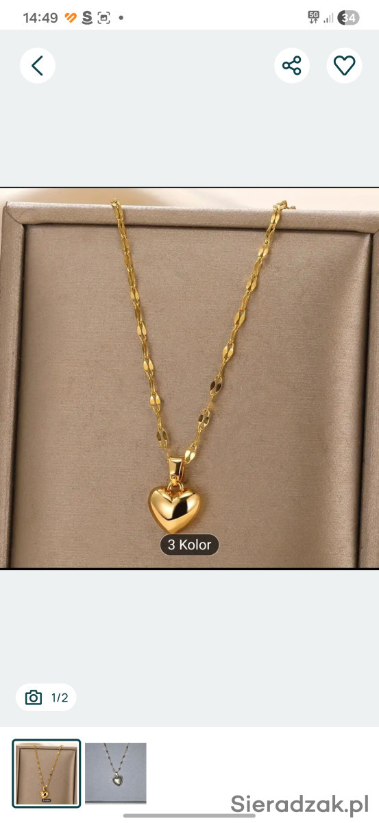 Łancuszek z zawieszką w kształcie serca. Dodaje subtelności i uroku każdemu ubraniu. Idealny na prezent dla bliskiej osoby.wykonany ze stali jubilerskiej.wysyłka za pobraniem(27 zł)