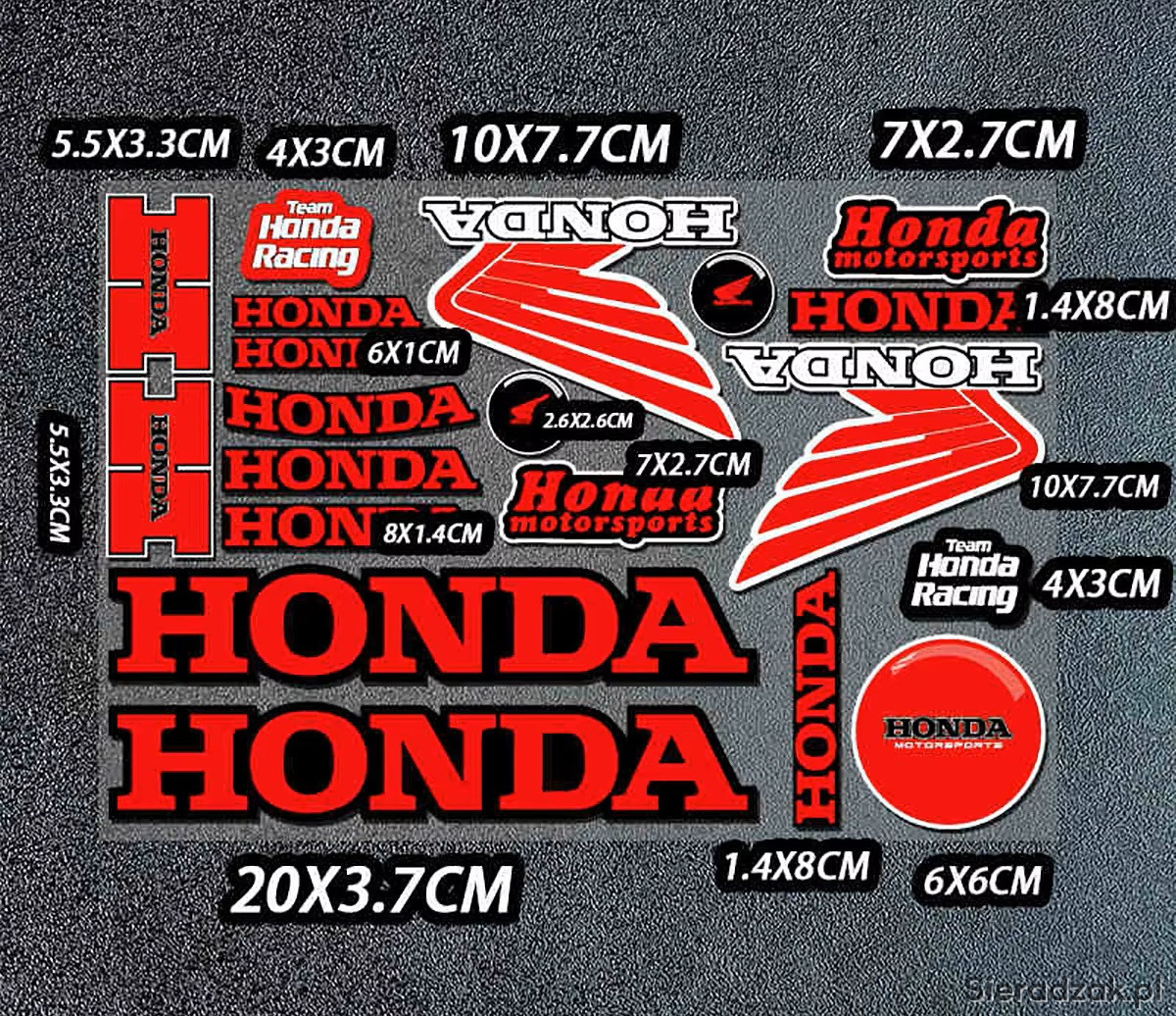 Oferuję do sprzedaży zestaw naklejek dla Hondy. Może być stosowana na każdej gładkiej powierzchni samochodu, motocykla itp.
