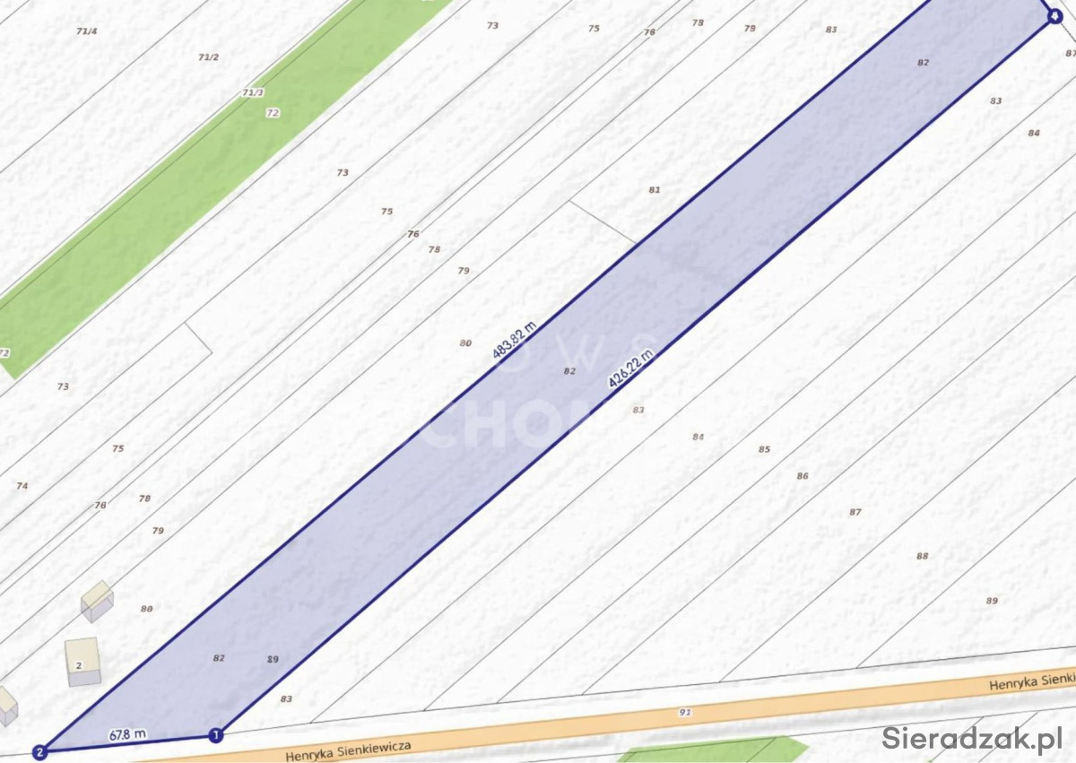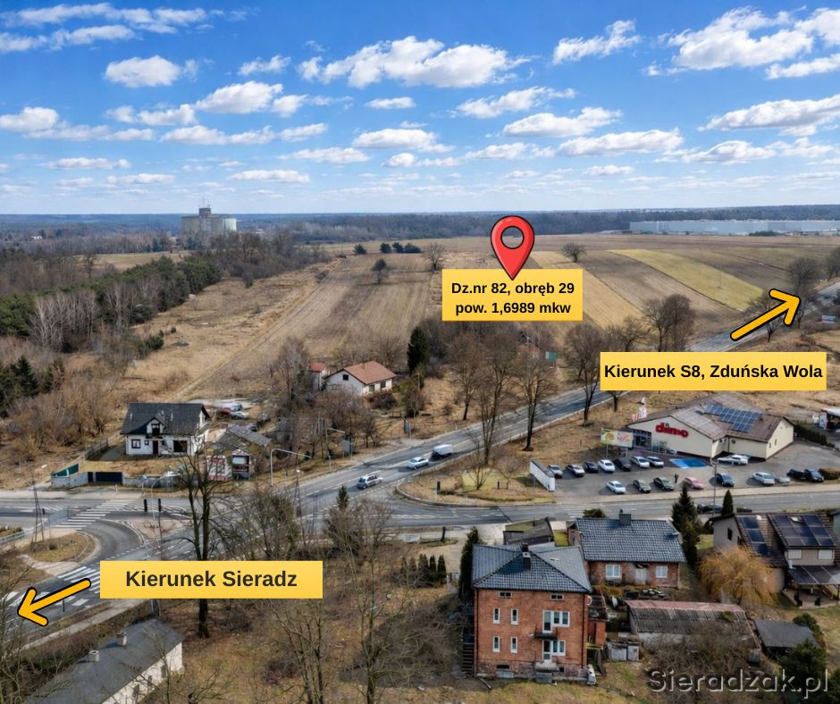 Na sprzedaż nieruchomość gruntowa o powierzchni 1,6989 ha, położona przy ul. H. Sienkiewicza w Sieradzu, bezpośrednio przy drodze krajowej, w sąsiedztwie skrzyżowania z sygnalizacją świetlną.