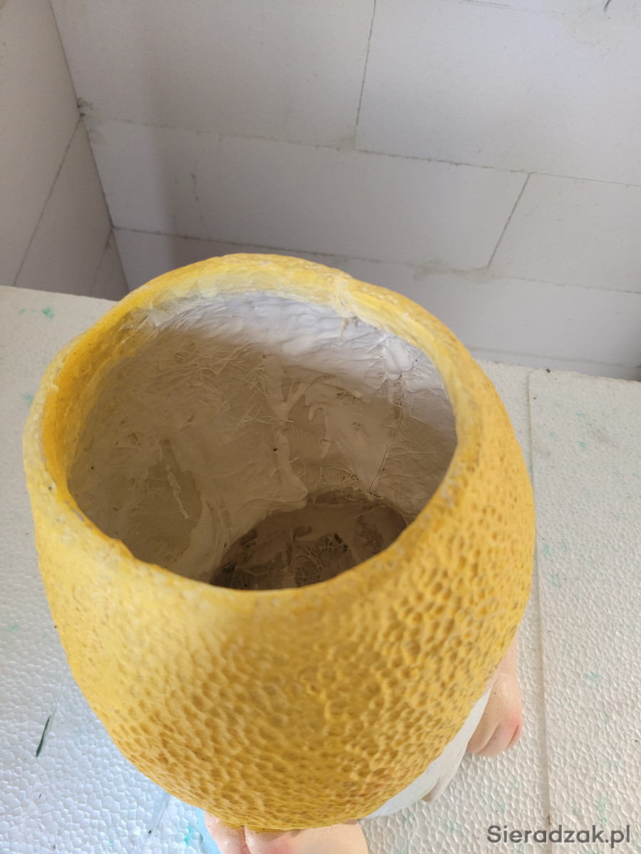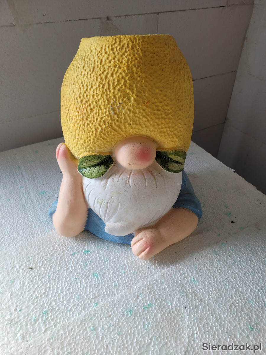 Krasnal z otworem w środku. Może służyć jako doniczka.