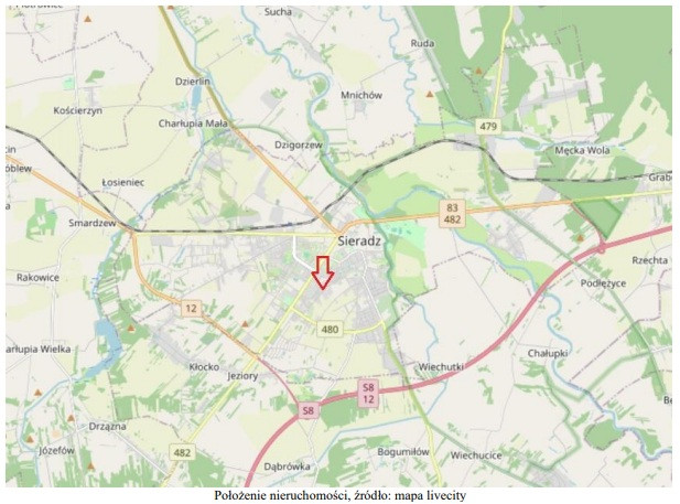 Dom położony jest na osiedlu mieszkaniowym tzw. Osiedlu Poetów, na południe od ścisłego centrum miasta Sieradza, po południowej stronie ul. Słowackiego, o jezdni asfaltowej średniej jakości, oświetlonej, z urządzonym chodnikiem. Najbliższe otoczenie stanowi na południu i zachodzie zabudowa mieszkaniowa szeregowa, na północy budynki mieszkalne wielorodzinne oraz po wschodniej stronie tereny do zagospodarowania i pojedyncze budynki mieszkalne wolnostojące. Dobra dostępność komunikacyjna z centrum ulicami Spółdzielczą, Broniewskiego i Jana Pawła. Przystanek komunikacji miejskiej znajduje się w odległości około 500 m przy ul. Broniewskiego. Dobra dostępność obiektów infrastruktury społecznej.
