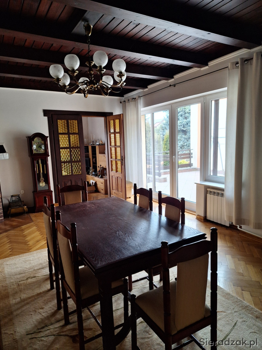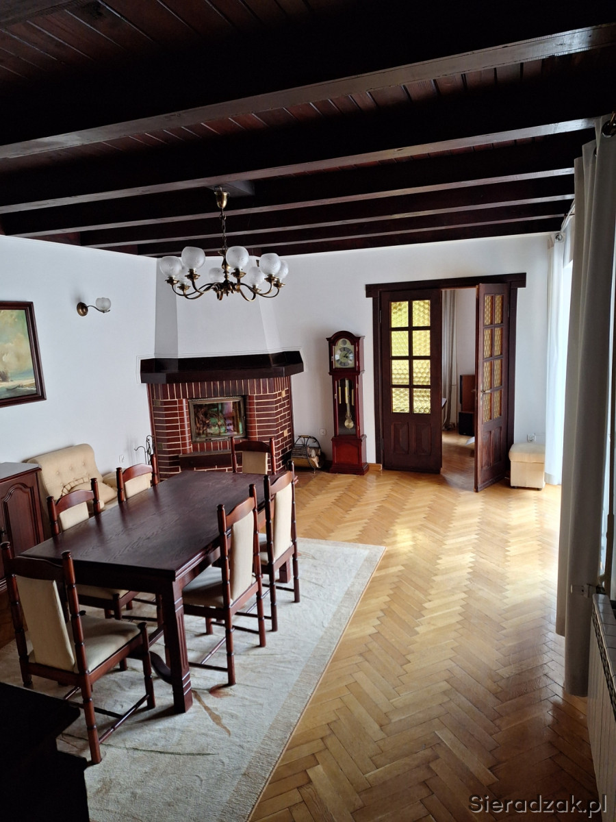 Na sprzedaż dom w zabudowie szeregowej o powierzchni użytkowej ok. 220m2 w Sieradzu. Nieruchomość wykończona w 1988 roku, wybudowana z cegły, nadająca się do mieszkania (kompletnie umeblowane i wyposażone AGD/RTV). W skład wchodzą 4 pokoje w części mieszkalnej, piwnica, poddasze, garaż, odkryty taras oraz ogródek. Działka o powierzchni 7,16 ara, ogrodzona drewnianym (tylko część frontowa) i metalowym (siatka) płotem.