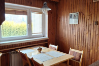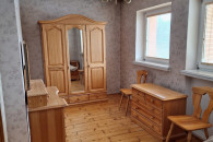 Budynek mieszkalny dwukondygnacyjny, (parter + poddasze), w całości podpiwniczony (wysoka piwnica), wymurowany z drobnowymiarowych elementów budowlanych, na zaprawie cementowo - wapiennej, na fundamentach betonowych; posadzki betonowe, stropy z płyty żelbetowej, dach o konstrukcji drewnianej, dwuspadowy, o pokryciu z blachy. Tynk zewnętrzny cementowo-wapienny. Ocieplenie styropianowe. Okna drewniane i PCV z roletami, drzwi zewnętrzne antywłamaniowe. Elementy wewnętrznego wykończenia: tynki cementowowapienne, w pokojach tapety lub malowane, w korytarzach, kuchni - boazeria, w łazience z wc, częściowo kuchni - glazura, podłogi wykończone parkietem lub deskami podłogowymi, w łazience z wc i częściowo kuchni – terakota. Drzwi wewnętrzne płycinowe. Ceramika w łazienkach z wc – parter i piwnica standard podstawowy. Zabudowa i osprzęt w kuchni – standard podstawowy. Schody wewnętrzne o podestach drewnianych, balustrada drewniana. W salonie znajduje się kominek.