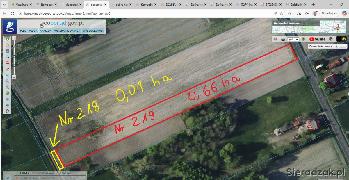 Na sprzedaż działka Nr 219-066 ha oraz działka 218-0,01 ha, łącznie 067 ha