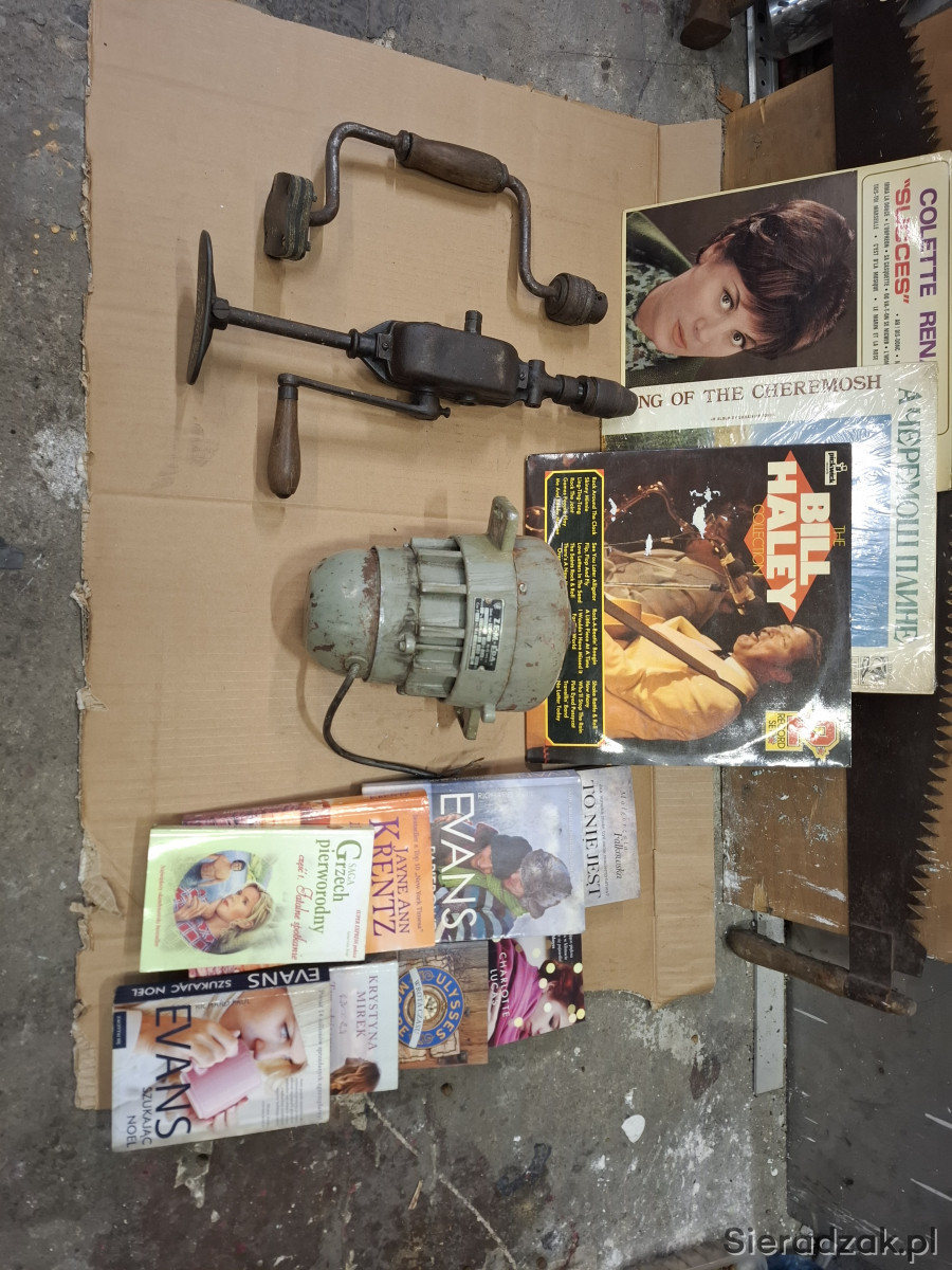 Sprzedam stare wiertarki i stary silnik od pralki ,, Frani" pasuje też do maszyn do szycia Łucznik (sprawny) oraz stare książki i płyty winylowe. Cana za całość.