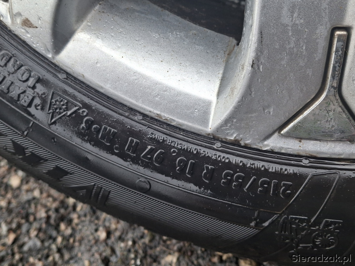 Sprzedam komplet kół wraz z śrubami 215/55 R16, opony zimowe, prawie nowe.