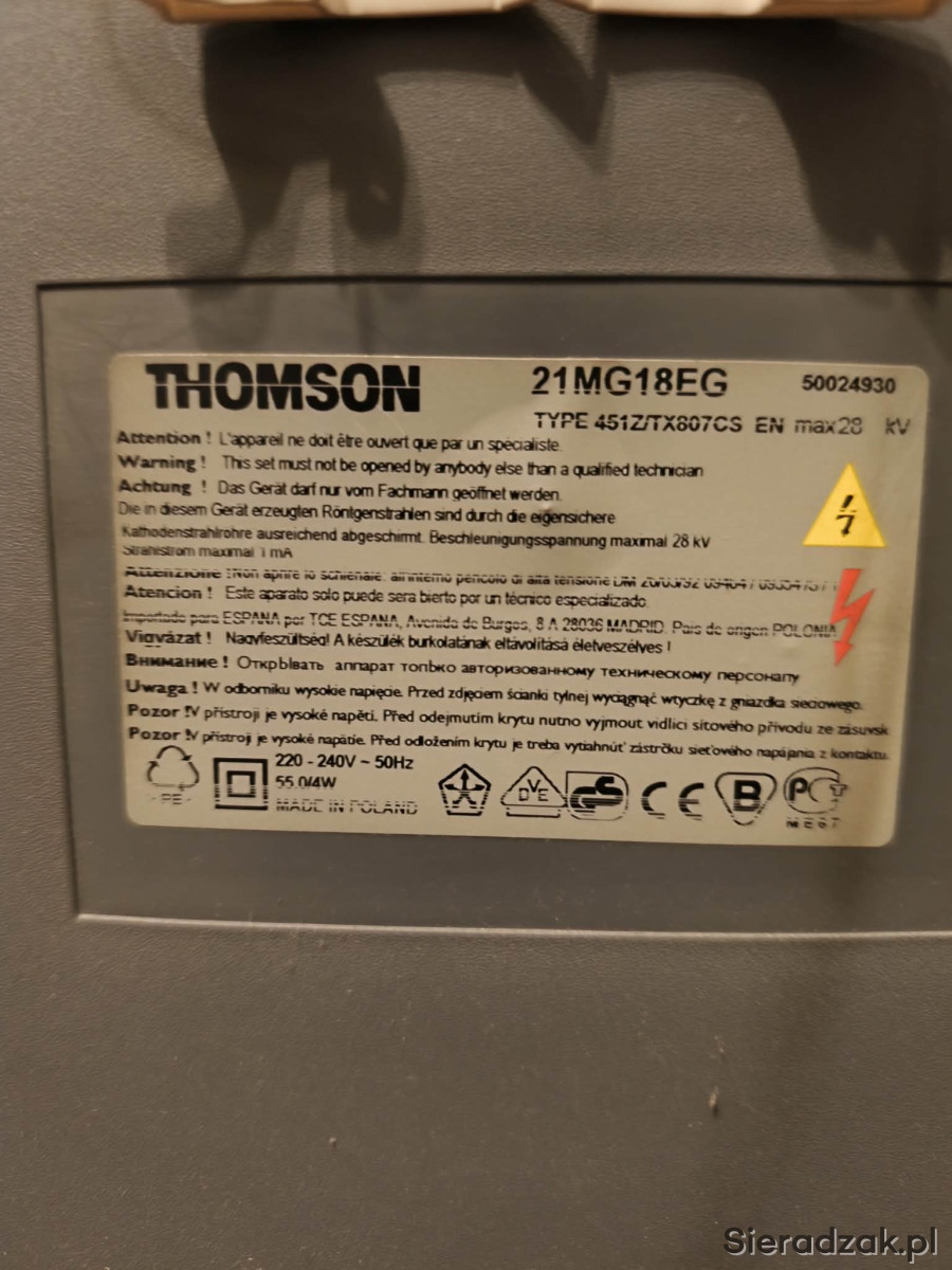 Do sprzedania sprawny telewizor Thomson 21" z oryginalnym pilotem. Więcej inf. tel. 509-715-669.