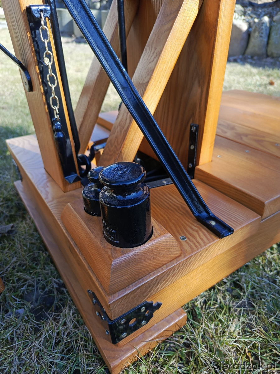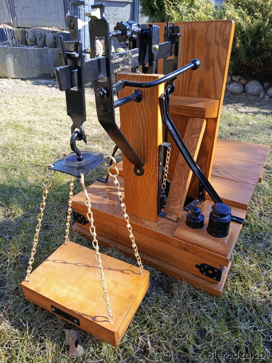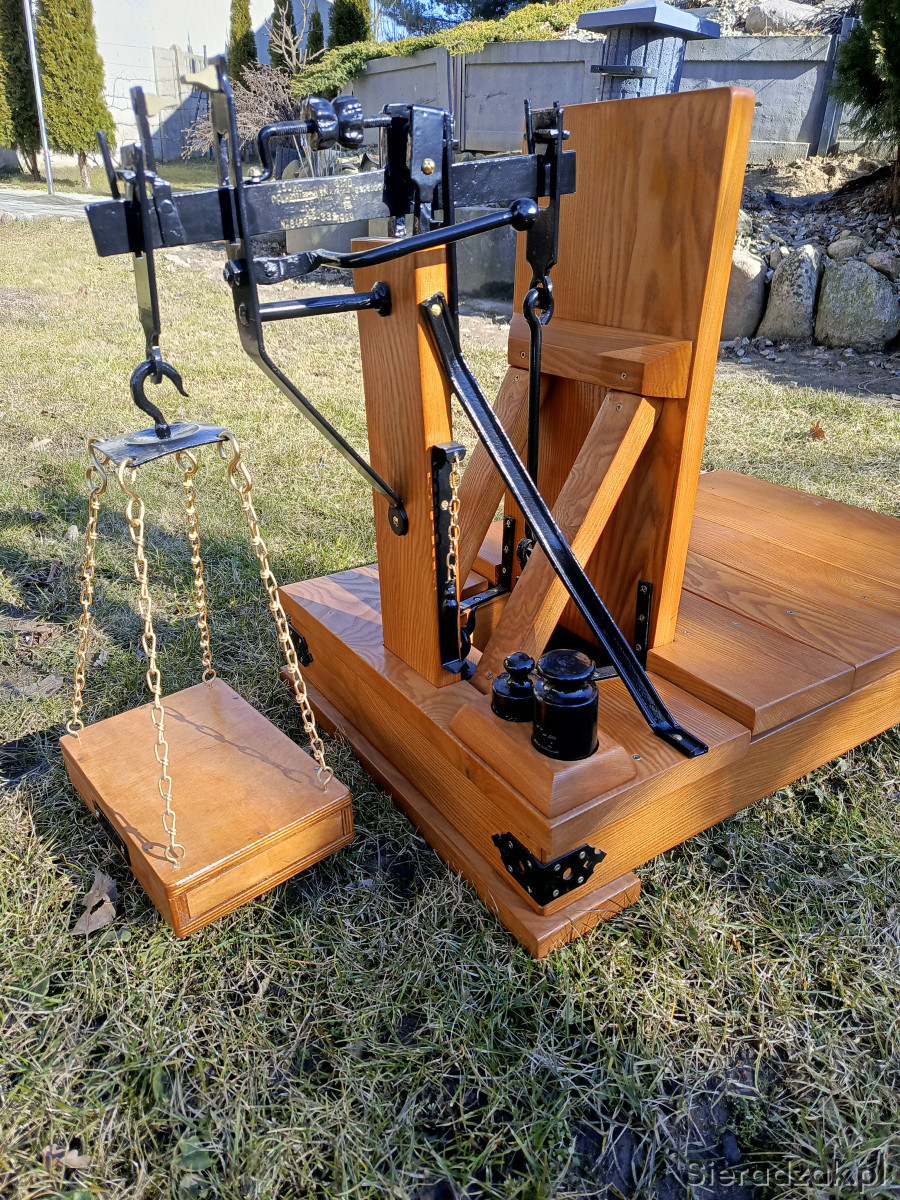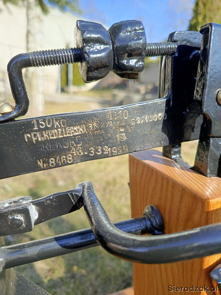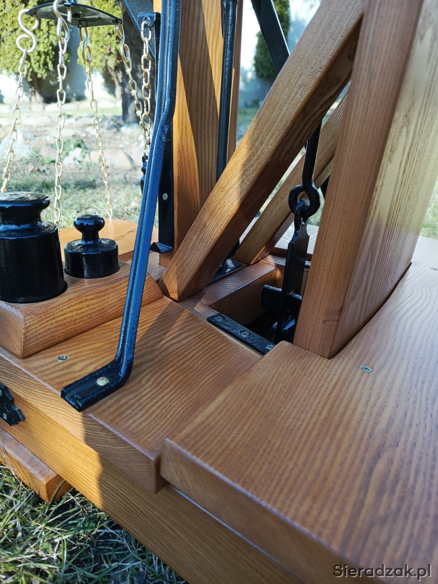 Witam mam do sprzedania wagę rolniczą z roku 1929. Waga została całkowicie rozebrana , elementy metalowe zostały wypiaskowane,polakierowane w podkład epoksydowy i lakier czarny w połysku. Elementy drewniane zostały zastąpione nowymi na wzór oryginału, wykorzystałem do tego drewno jesion. Elementy drewniane polakierowane lakierobejcą w kolorze Stary Dąb. Oryginalna konstrukcja drewniana rozpadała się w rękach ,jakby nie patrzeć waga ma 97lat. Polecam wagę jako eksponat albo zastosować do celów dekoracyjnych. Polecam .