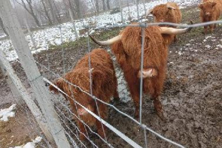 Sprzedam stado Highland, dwie krowy trzyletnie, dwie jałóweczki piętnastomiesięczne oraz byczek ośmiomiesięczny.