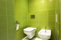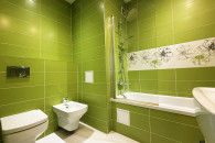 Łazienka - razem z wc, wyposażona w wannę, bidet, umywalkę, glazura nowego typu,