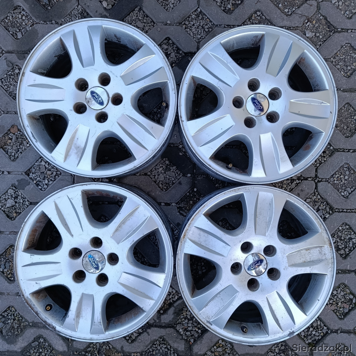 4x felgi aluminiowe oryginalne FORD 16'' 5x108, 6,5J, ET52,5, otwór centralny 63,4mm. Felgi w dobrym stanie jak na zdjęciach, proste, sprawdzone na wyważarce.