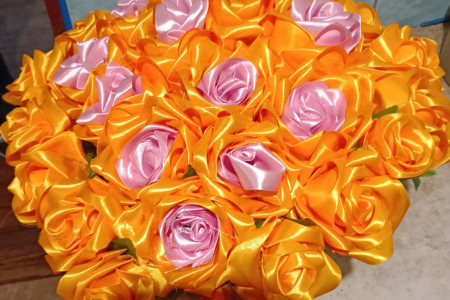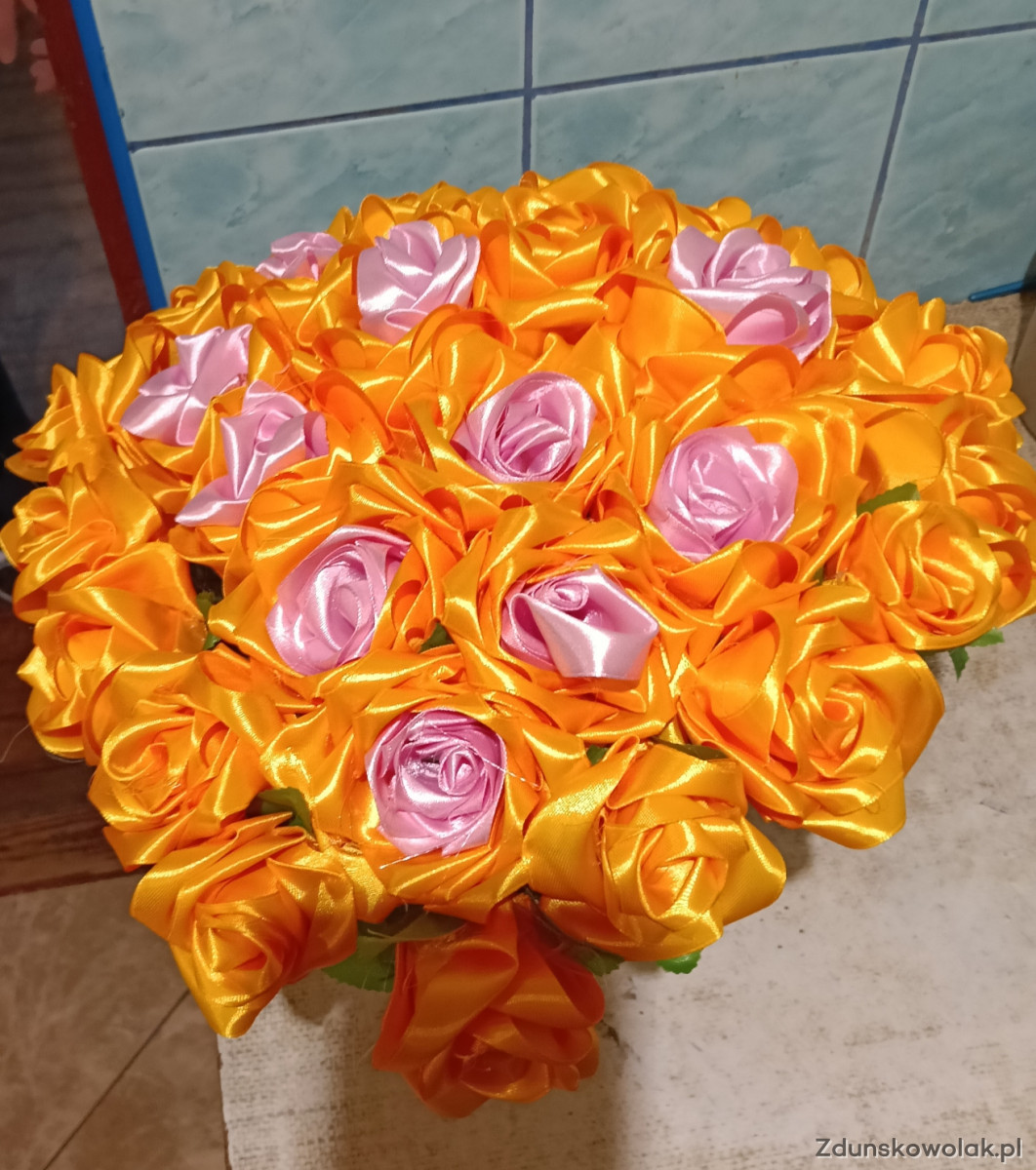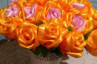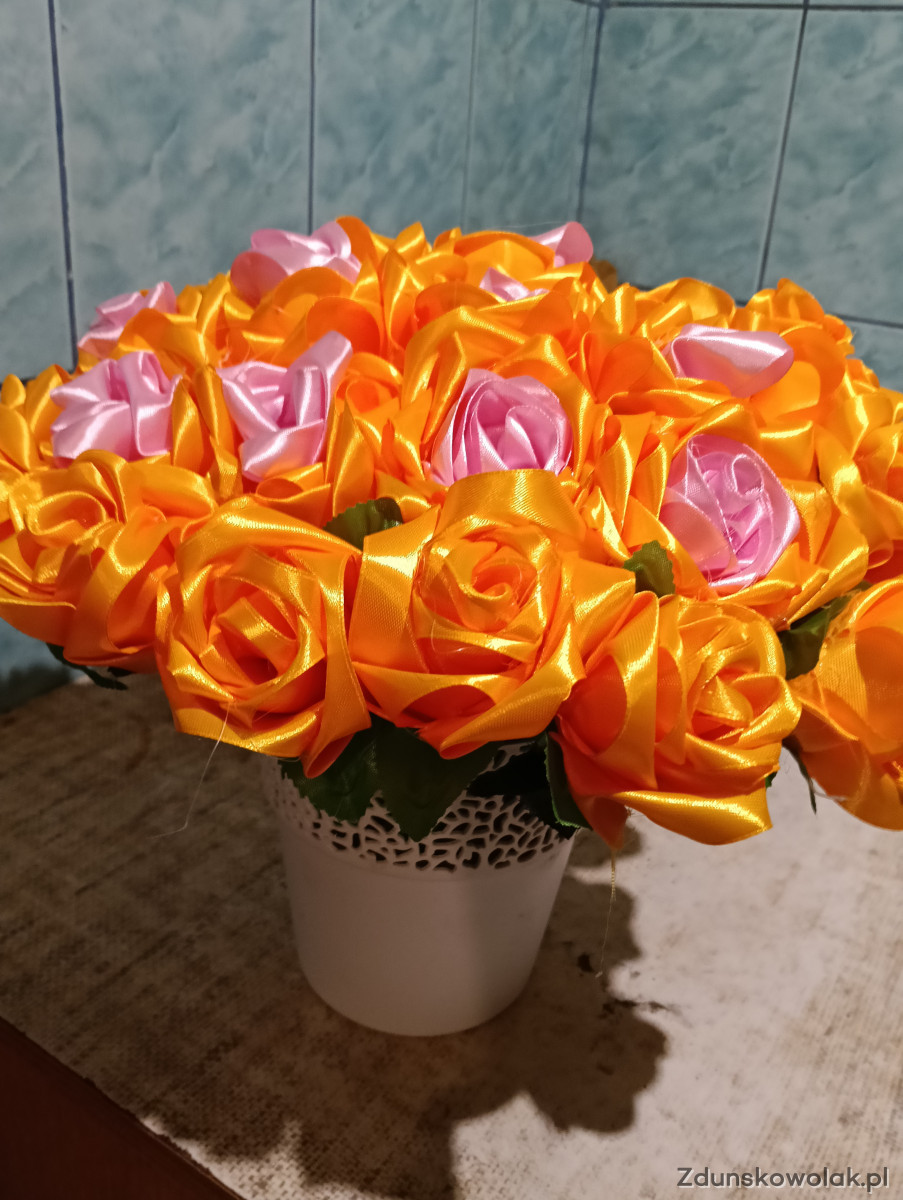 Bukiet z wstążki w doniczce własnoręcznie wykonany