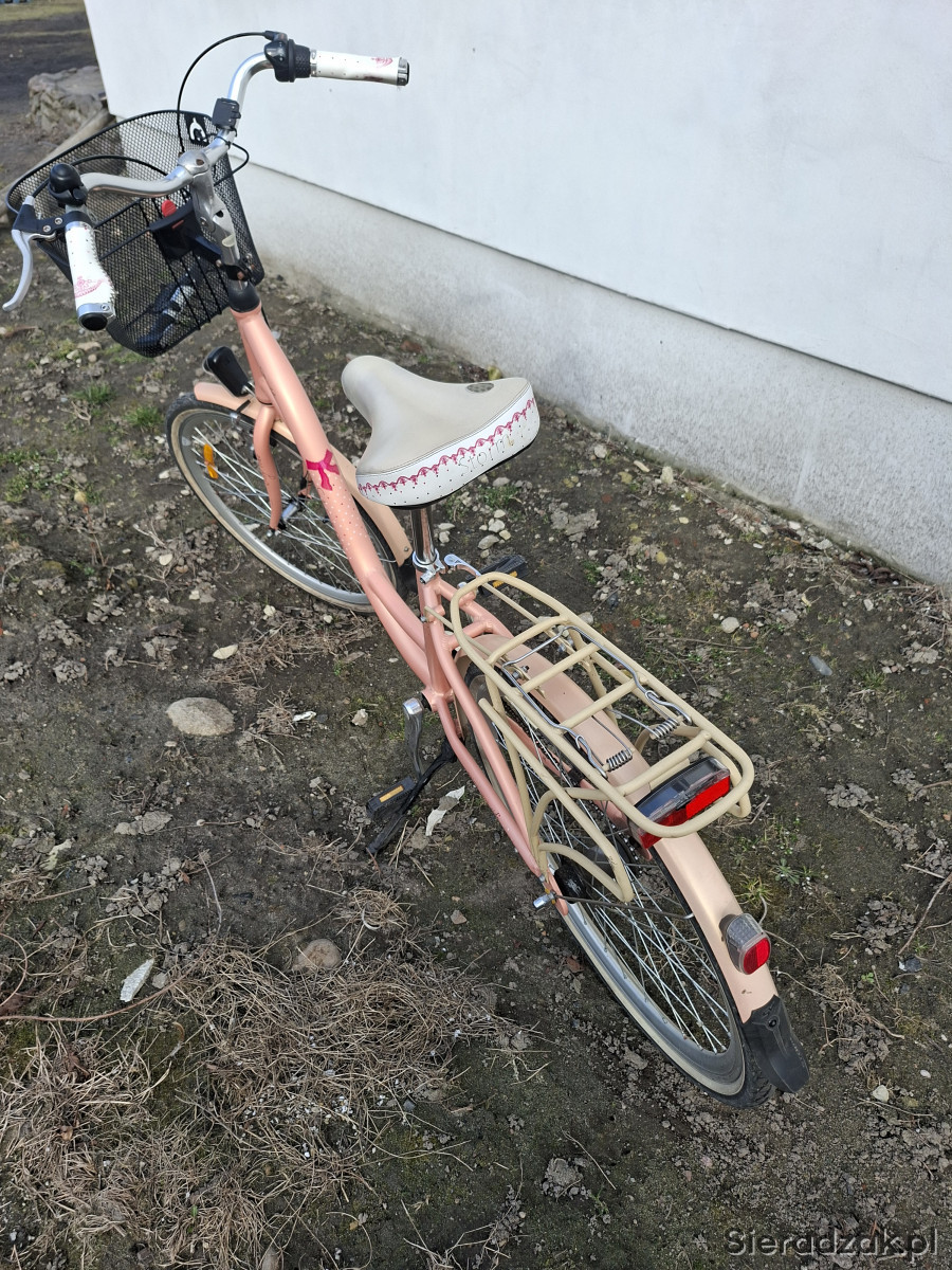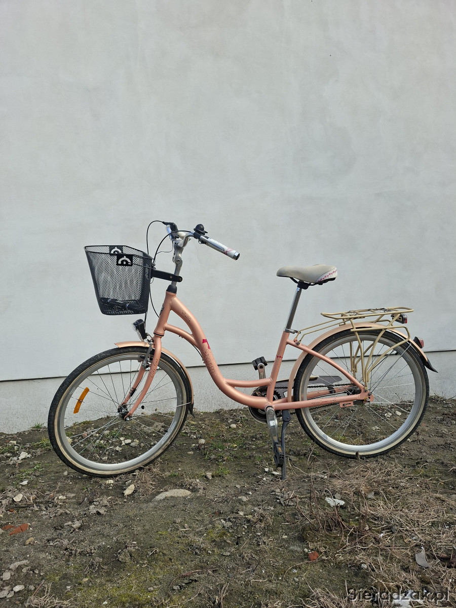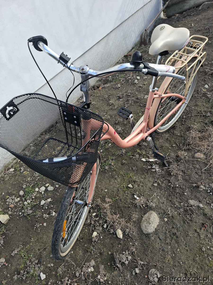 Rower posiada 3-biegową przerzutkę, praktyczny koszyk z przodu, wygodne, szerokie siodełko
