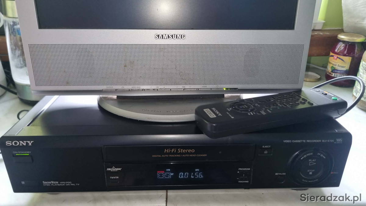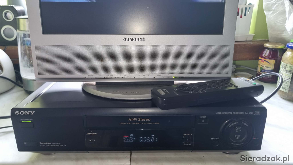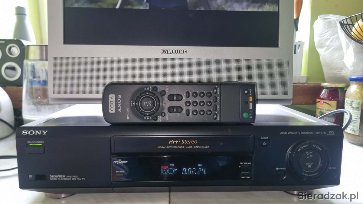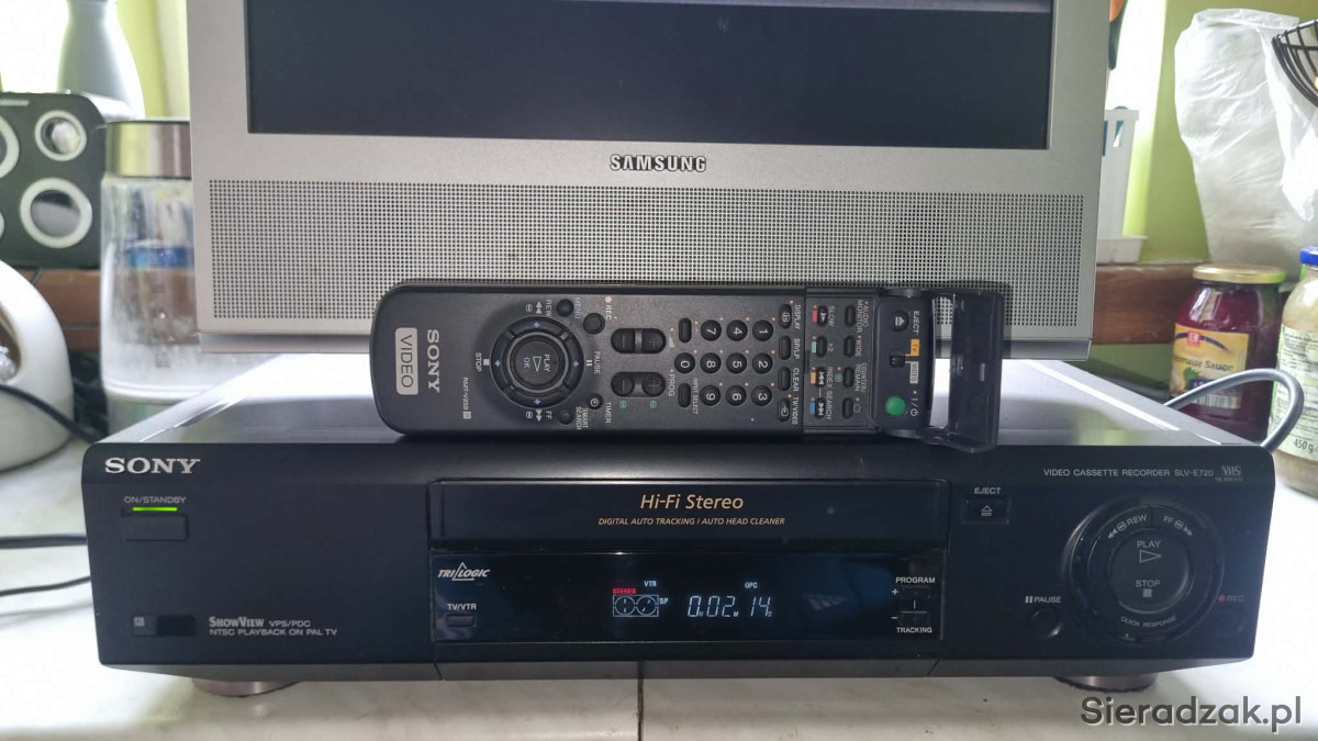 Sony SLV-E720 Video Cassette Recorder VHS VCR Player, Pal & Ntsc Playback z pilotem.
