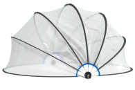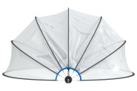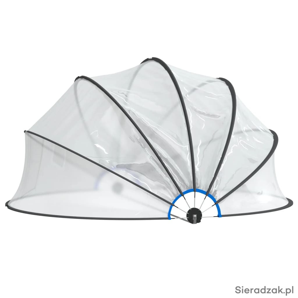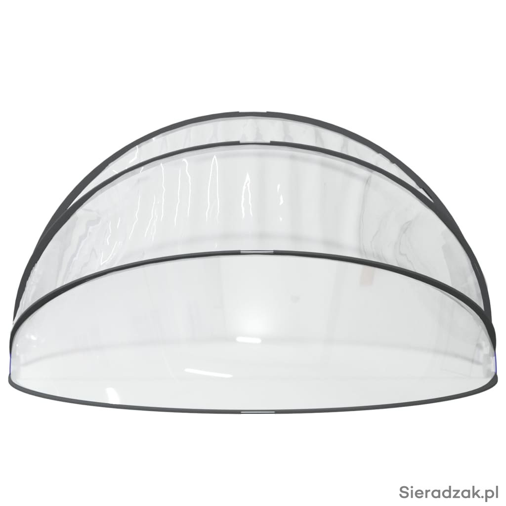 Ochrona basenu: wykonana z PVC z ochroną UPF 30 oraz włókna szklanego, zapewnia doskonałą ochronę przed słońcem i deszczem. Zapobiega on przedostawaniu się do basenu zanieczyszczeń z zewnątrz, takich jak liście, owady i kurz. Funkcja zachowania ciepła: w razie potrzeby konstrukcja ta zapewnia szybsze podgrzanie wody oraz mniejszą utratę ciepła w nocy. Łatwość obsługi: zadaszenie basenowe można łatwo otwierać i zamykać dzięki unikalnemu mechanizmowi zawiasów. Solidnie zamocowane akcesoria: aby solidnie zakotwiczyć kopułę w podłożu, w zestawie znajdują się kolce i gwoździe hakowe. Nie musisz się martwić, że kopuła basenowa zostanie porwana przez wiatr. Specyfikacja Kolor: przezroczysty Materiał: PVC (polichlorek winylu), włókno szklane