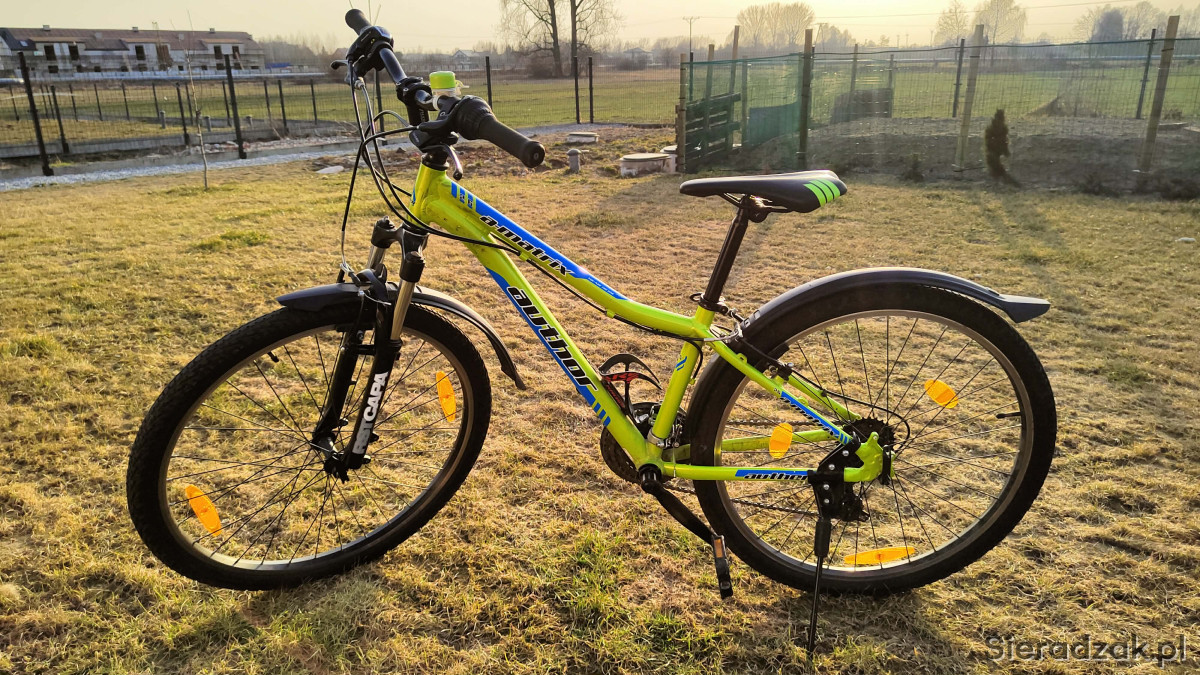 Sprzedam rower młodzieżowy Author A-Matrix 13.5" Limonkowo-Czarny 26 w bardzo dobrym stanie, po przeglądzie. Idealny dla chłopaka od 10 lat wzwyż. Dołożony dzownek na kierwonicę, dodatkowy element podnoszący kierownicę dla wygodniejszej pozycji jeżdżenia i założone błotniki których nie ma seryjnie.