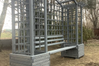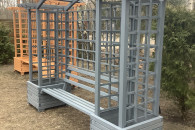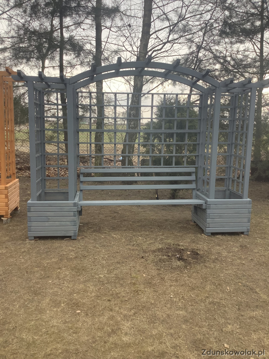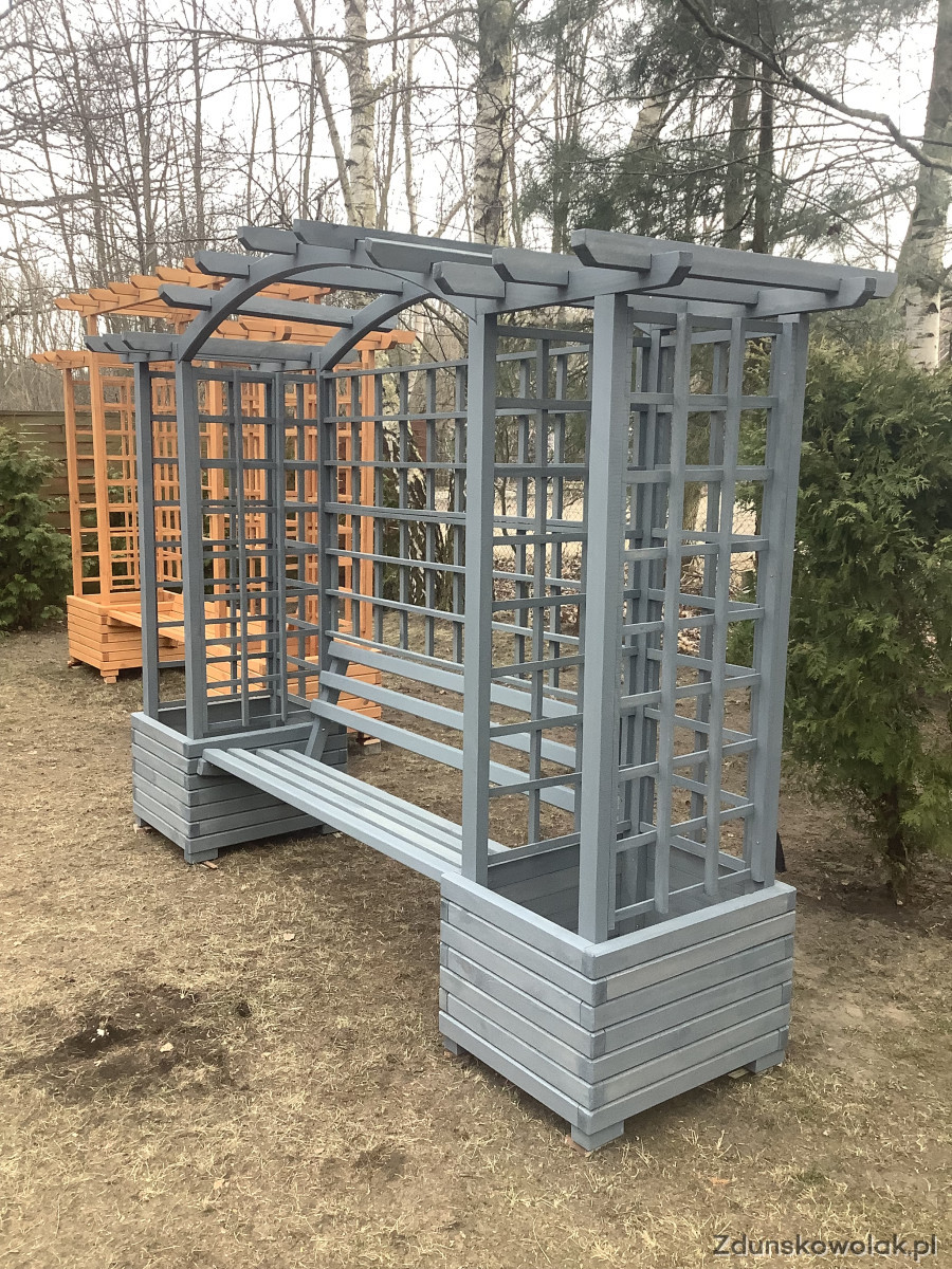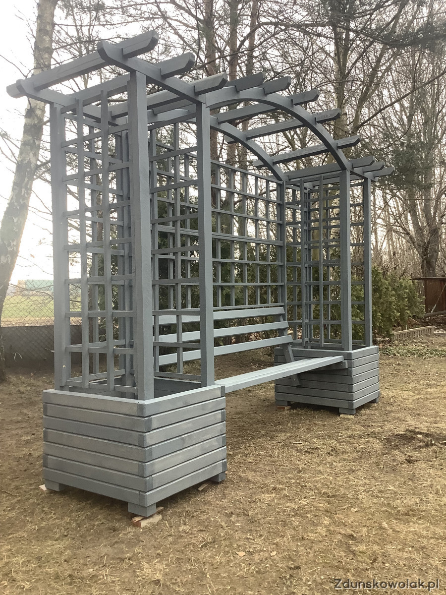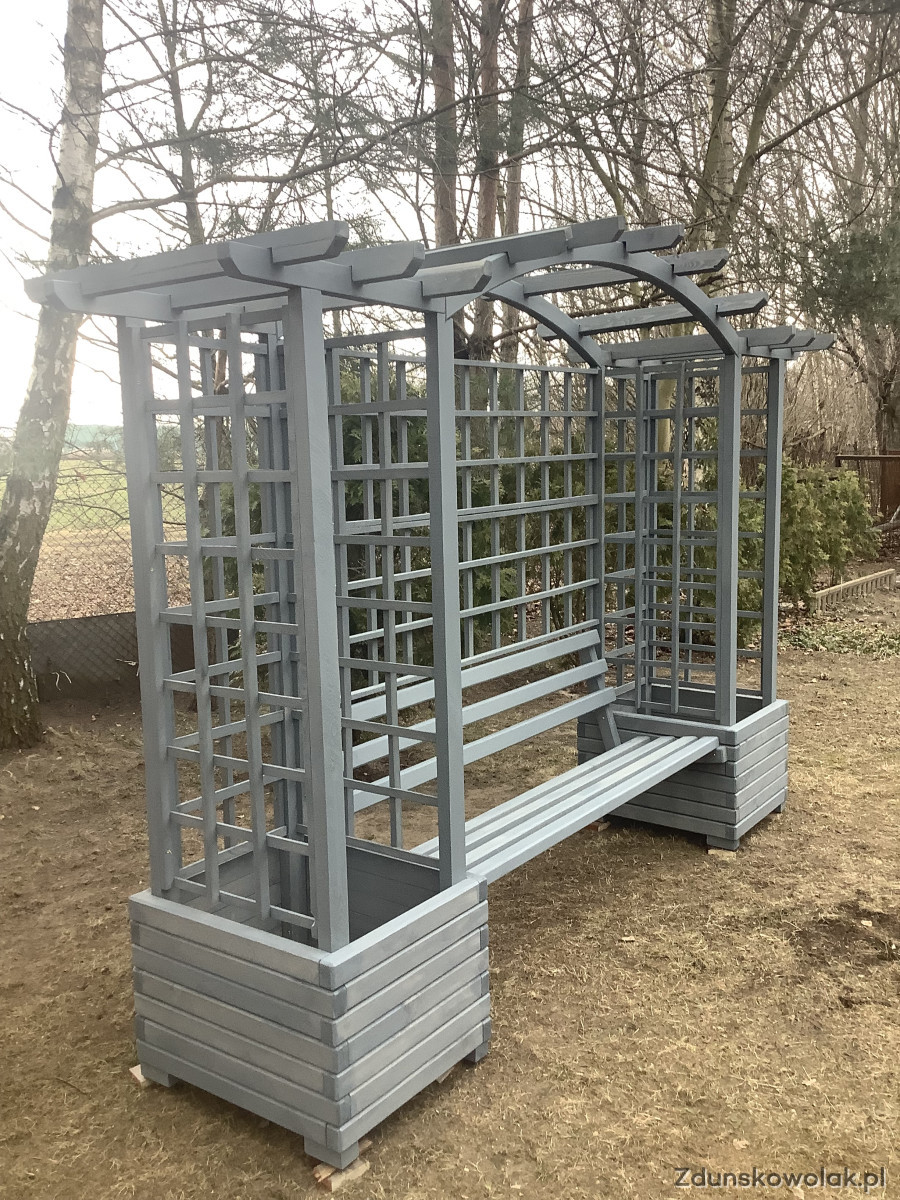 Pergola ogrodowa z donicami i ławką w kolorze njord nordyckie klify.