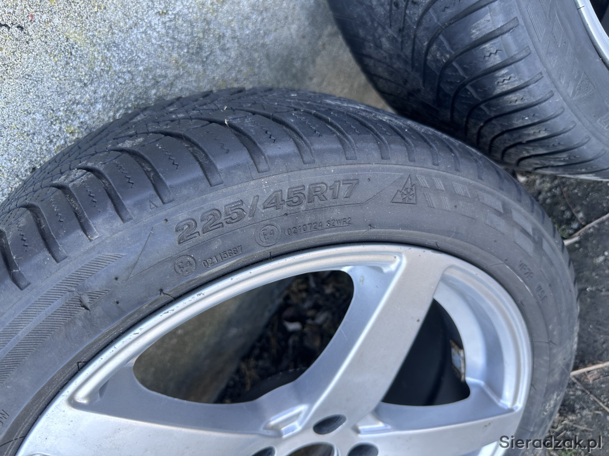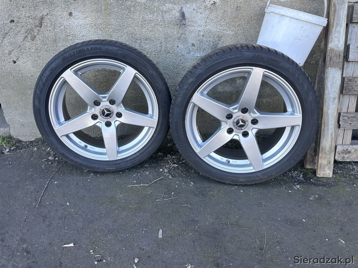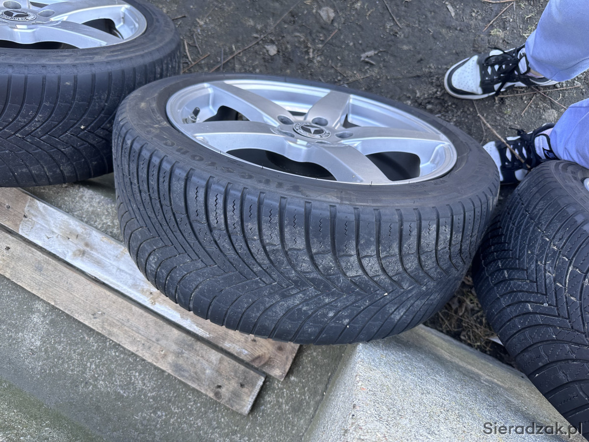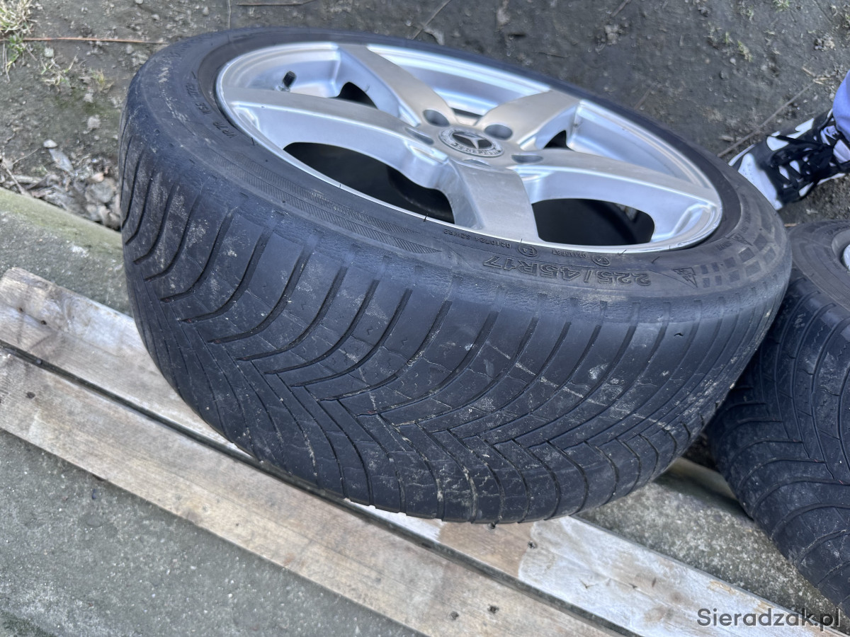 sprzedam koła 4x alufelgi do Mercedesa (pasuje do grupy VAG) 17" 5x112; 7,5 J; ET 35 , otwór centralny 66,6 (posiadam pierścienie centrujące na 57,1). 4 opony wielosezonowe Bridgestone 225/45 R17 dot 17/23. Dwie opony w stanie dobrym, pozostałe dwie w stanie zadowalającym. Komplet do odebrania w okolicach Kalisza bądź w Sieradzu. Możliwa wysyłka po wcześniejszym kontakcie.