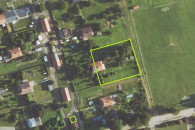 • działka: 1800 m² (ok. 40 x 45 m, kształt prostokąta)