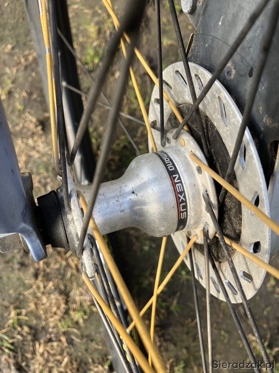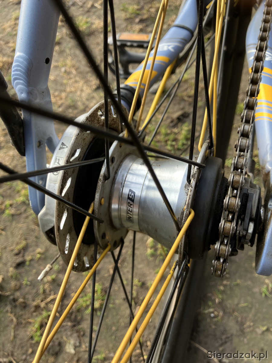 Mam do sprzedania ciekawy rower miejski. Przywieziony z Danii. Piasty i hamulce shimano, 5biegów, nowy łańcuch. Rozmiar ramy 21". Opony 28x2". Stan bardzo dobry- (kilka odprysków lakieru na ramie).
