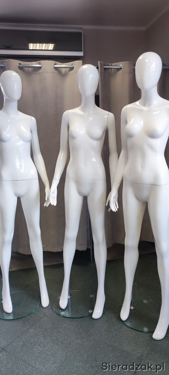 Mam do sprzedania 2 manekiny damskie białe. Manekin stoi na stabilnej podstawie szklanej z mocowaniem do łydki. Manekiny posiadają delikatne ślady użytkowania. Możliwość kupienia pojedynczej sztuki.