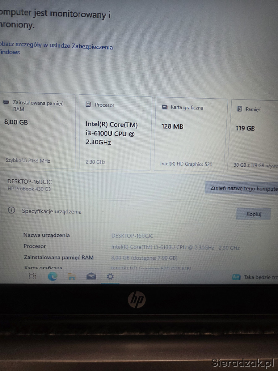 Na sprzedaż mam laptopa HP Probook 430 G3 o wielkości 13.3 cala, procesor i3-6100u 8gb ram 128gb dysk ssd, bateria jest sprawna w bardzo dobrym stanie, laptop jest w pełni sprawny.