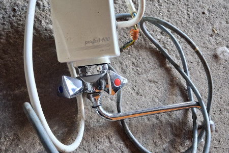 Podgrzewacz wody przeplywowy z kranem, stan bdbry, uzyty dwa razy