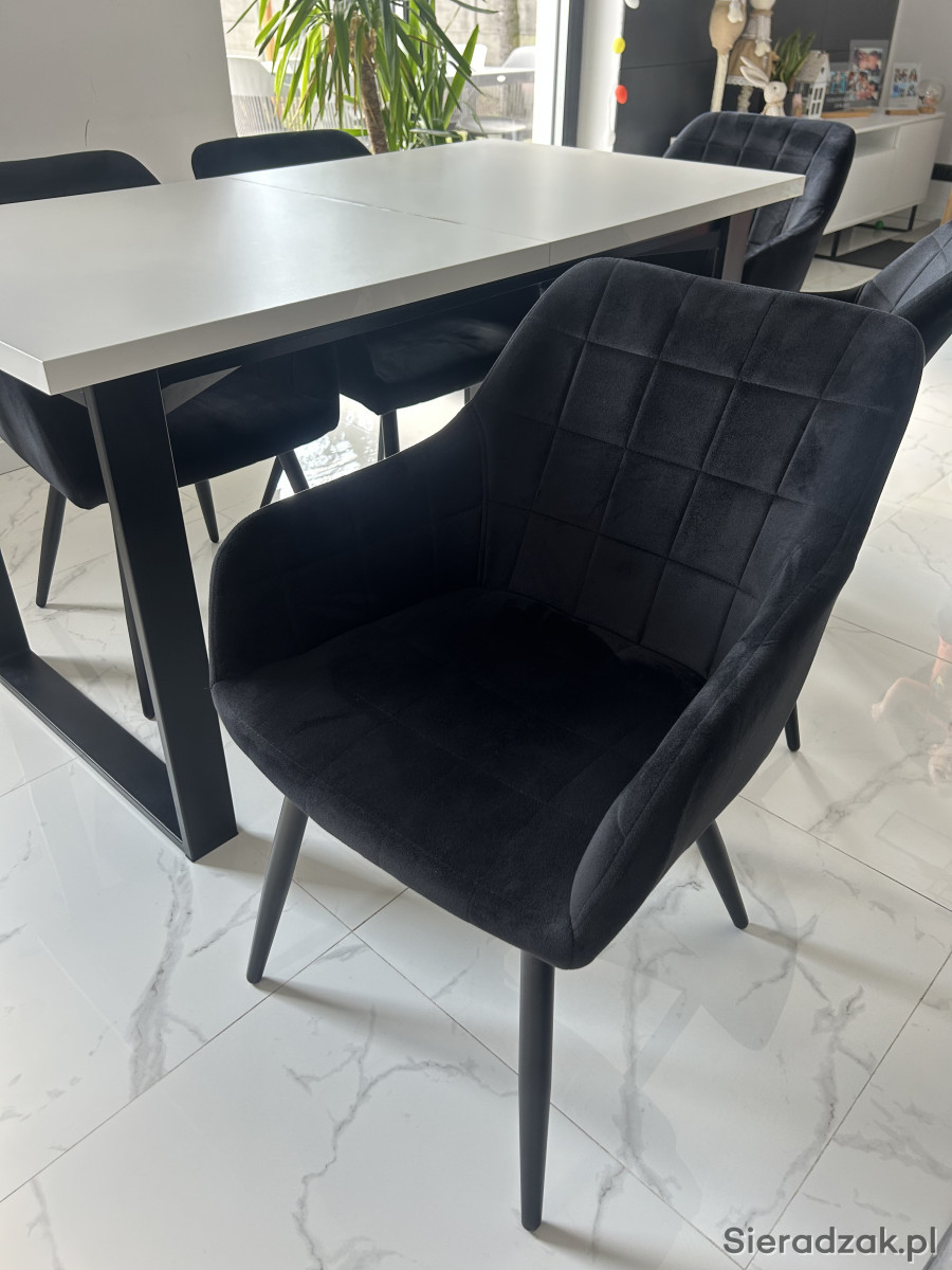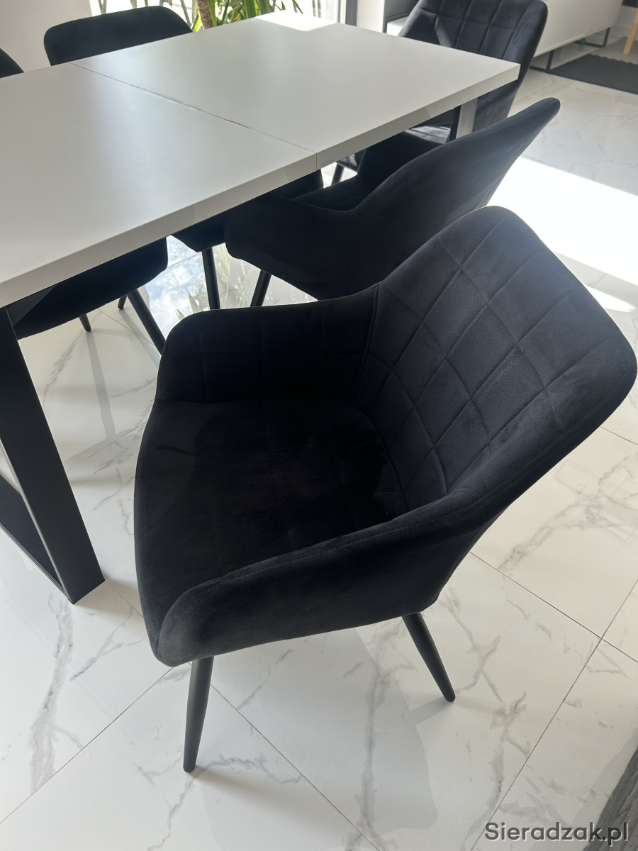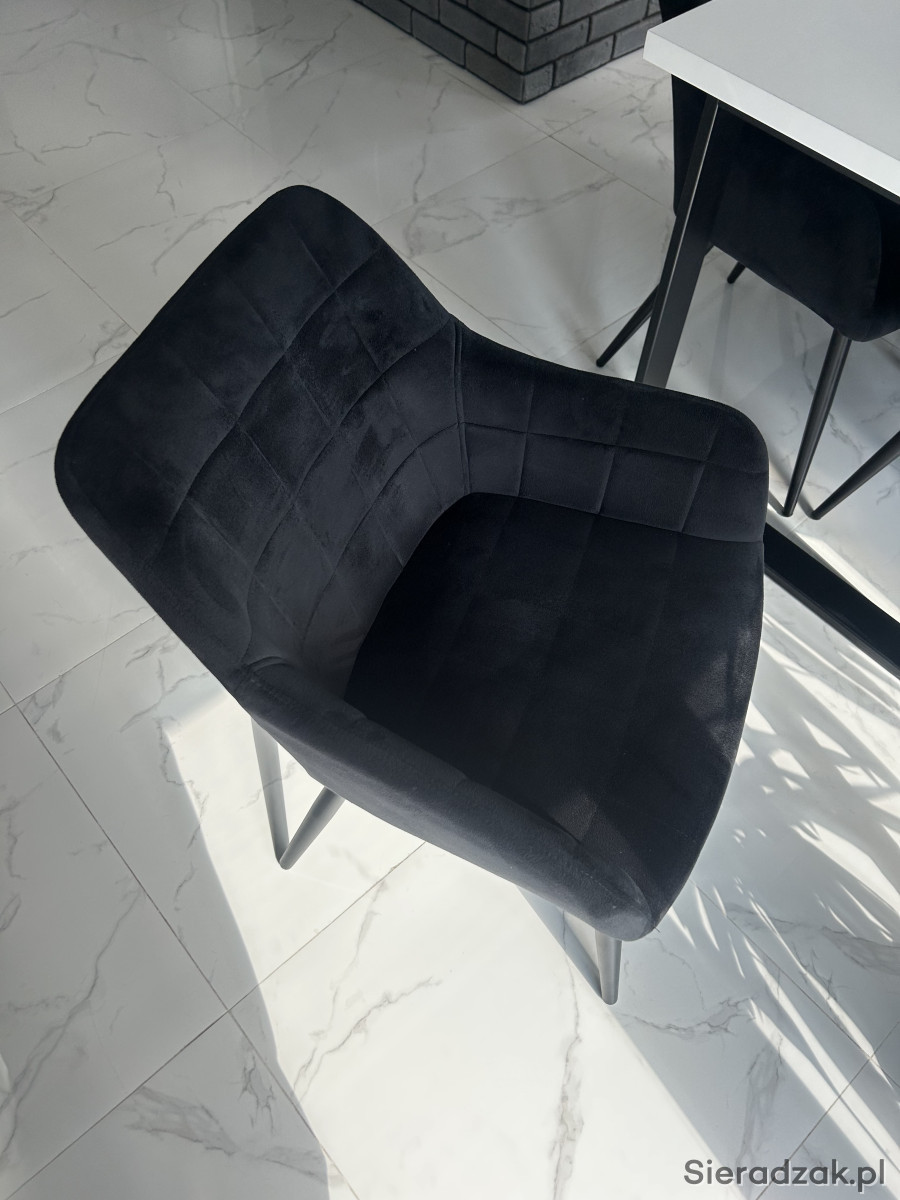Sprzedam zestaw 6 eleganckich, nowoczesnych krzeseł tapicerowananych w kolorze czarnym. Krzesła są solidne i wygodne idealne do salonu / jadalni.